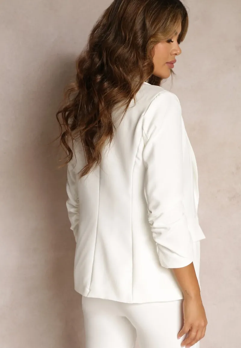 Wyjątkowa marynarka Elsituni, którą możesz łączyć zarówno z jeansami, jak i spodniami garniturowymi czy cygaretkami. Uwagę przykuwają marszczone rękawy o długości 7/8. Model zapinany na jeden guzik, z podszewką.
