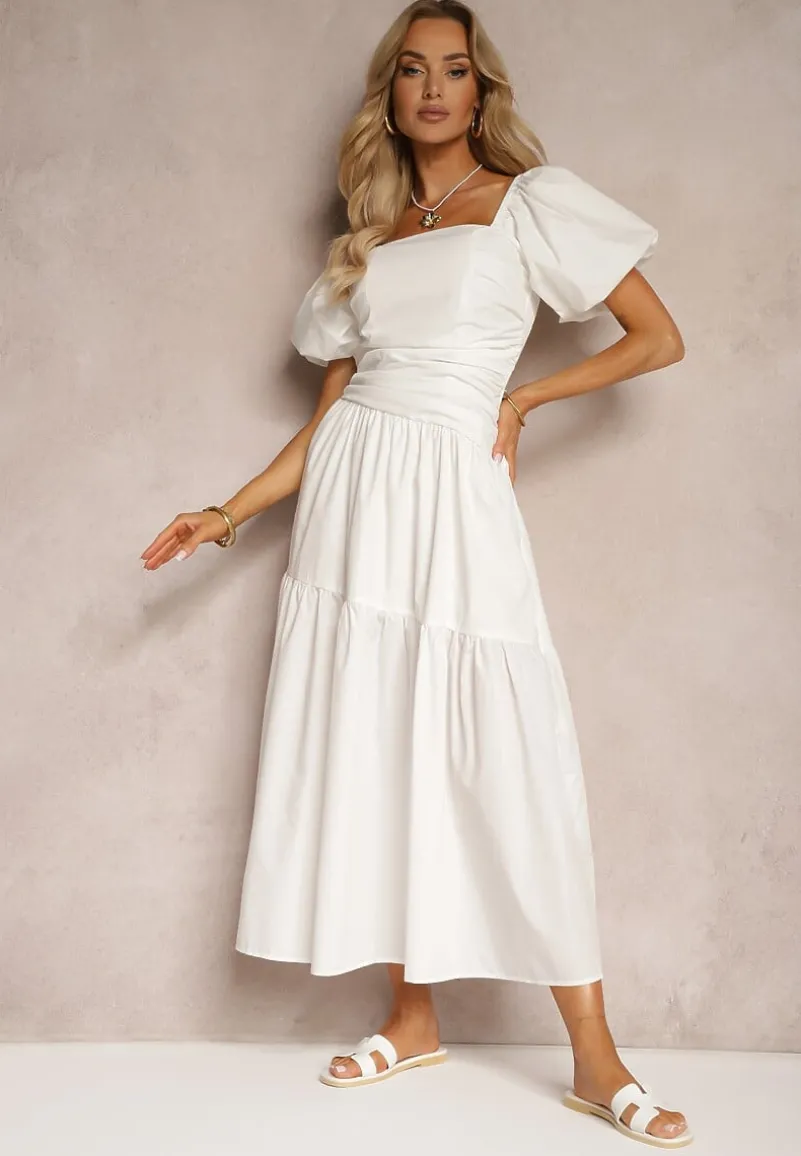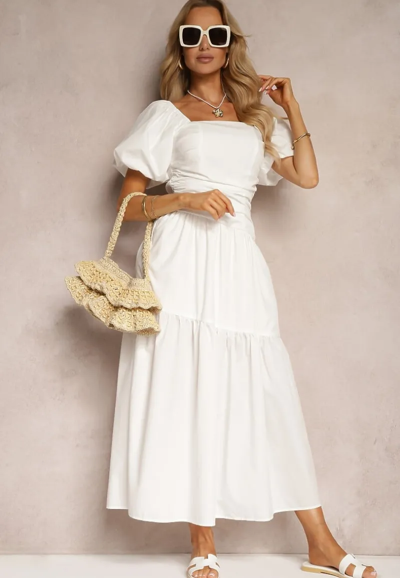 Sukienka Monvia z wiskozą to kwintesencja kobiecości, idealna na różnorodne okazje. Jej dopasowany fason z delikatnymi marszczeniami pięknie podkreśla figurę, a bufiaste rękawy dodają odrobiny ekstrawagancji. Dodaj do sukienki Monvia sandały na obcasie i minimalistyczną biżuterię, aby uzyskać wyrafinowany look na codzienne wyjścia, lub połącz z eleganckimi szpilkami i kopertówką, tworząc zjawiskowy zestaw na wieczorowe przyjęcie.
