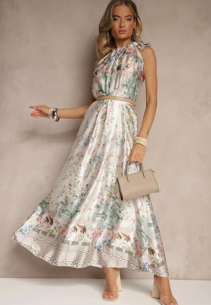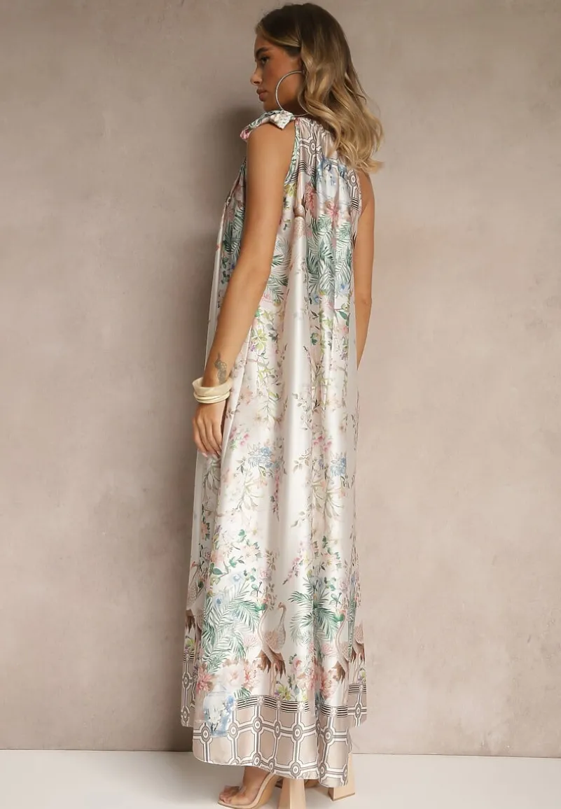 Sukienka z Satyny Zdobiona Kwiatowym Wzorem i Wiązaniem Fenalesa to kwintesencja kobiecości i elegancji. Luźny fason z delikatnym wiązaniem przy szui podkreśla sylwetkę, a zaokrąglony dekolt dodaje pewności siebie. To sukienka uniwersalna — z powodzeniem założysz ją zarówno na letnie spotkania z przyjaciółkami, jak i na formalne wyjście, takie jak romantyczna kolacja. Stylizuj ją ze sneakersami i jeansową kurtką lub połącz ją delikatnymi sandałkami na obcasie oraz minimalistyczną biżuterią. Efekt wow gwarantowany! Sukienka nie posiada podszewki.