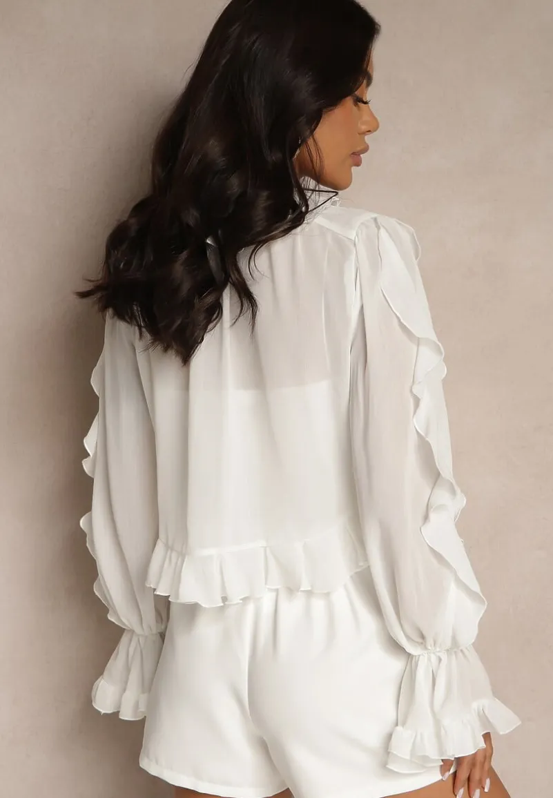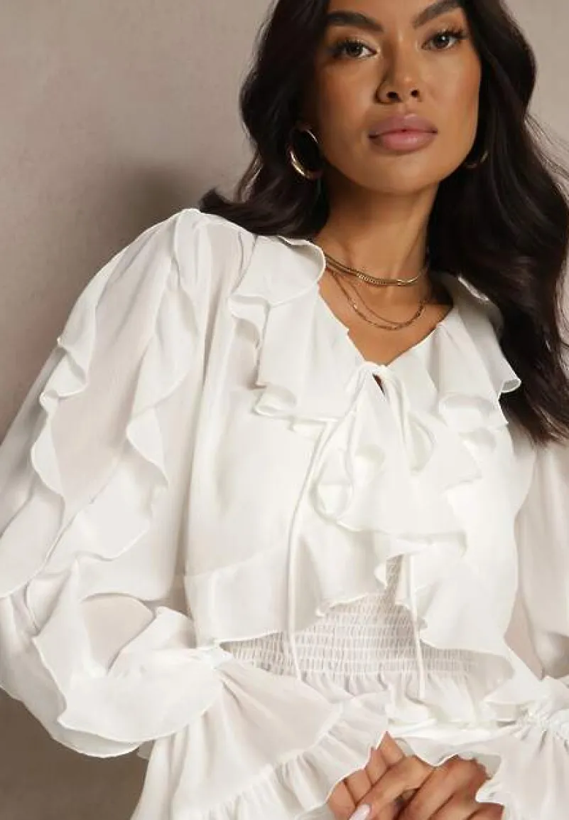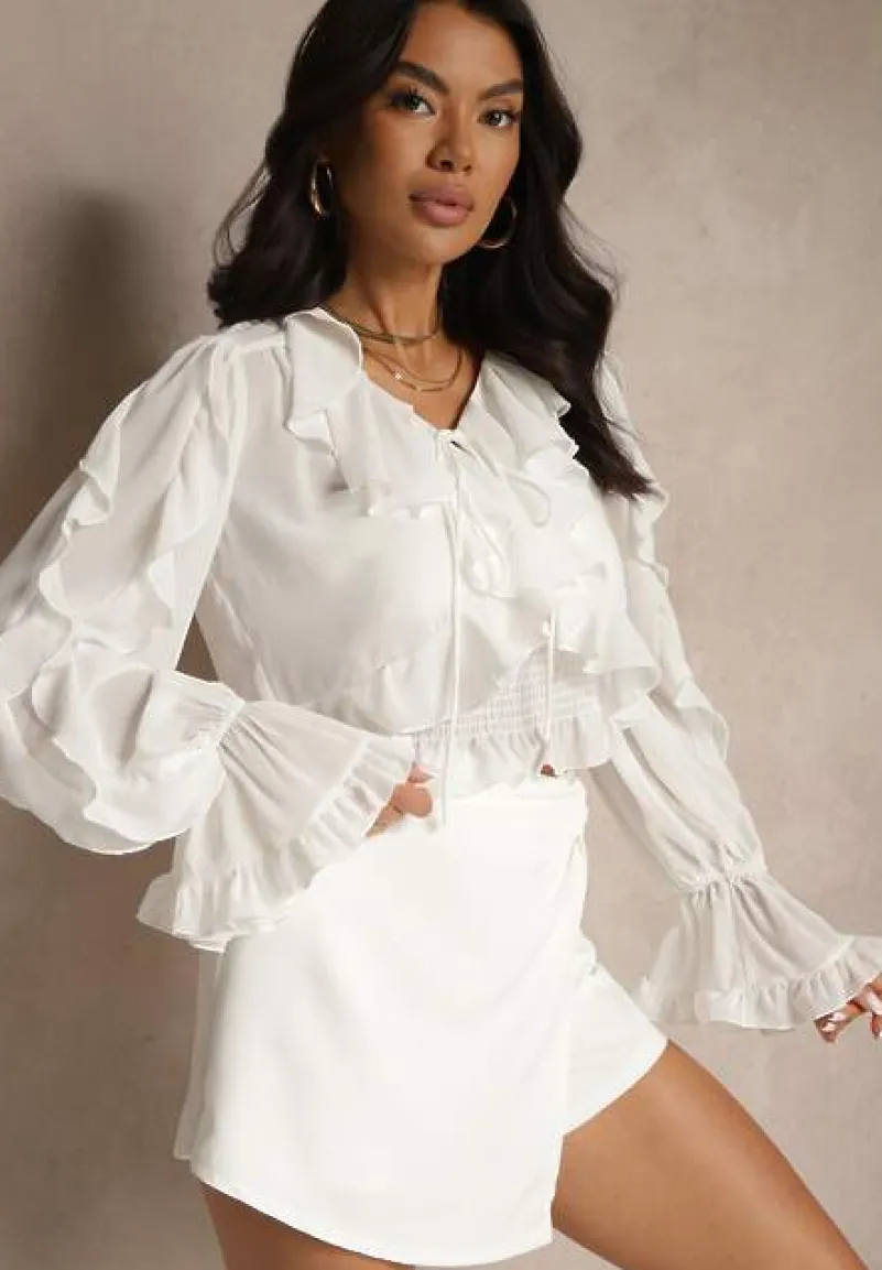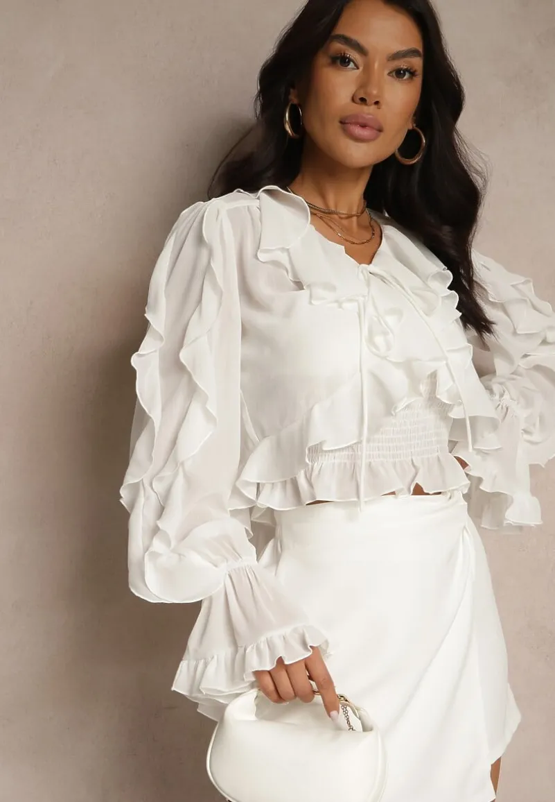Odkryj wyjątkową Wiązaną Bluzkę Zdobioną Falbanami z Dodatkowym Topem na Ramiączkach Miradiara! Jej subtelny fason ze zwiewnymi rękawami i dekoltem w kształcie litery V doskonale podkreśli Twoją sylwetkę, a falbany dodadzą uroku. Dodatkowy top na ramiączkach z wszytymi miseczkami zapewni komfort noszenia. Idealna zarówno na casualowe wyjścia, jak i formalne spotkania – zestaw ją z eleganckimi spodniami i klasycznymi szpilkami na wieczorne wyjście lub z jeansami i trampkami na co dzień. Wybierając bluzkę Miradiara, stawiasz na ponadczasową klasykę z nutą nonszalancji!