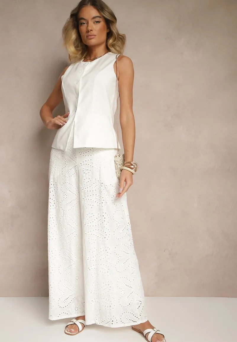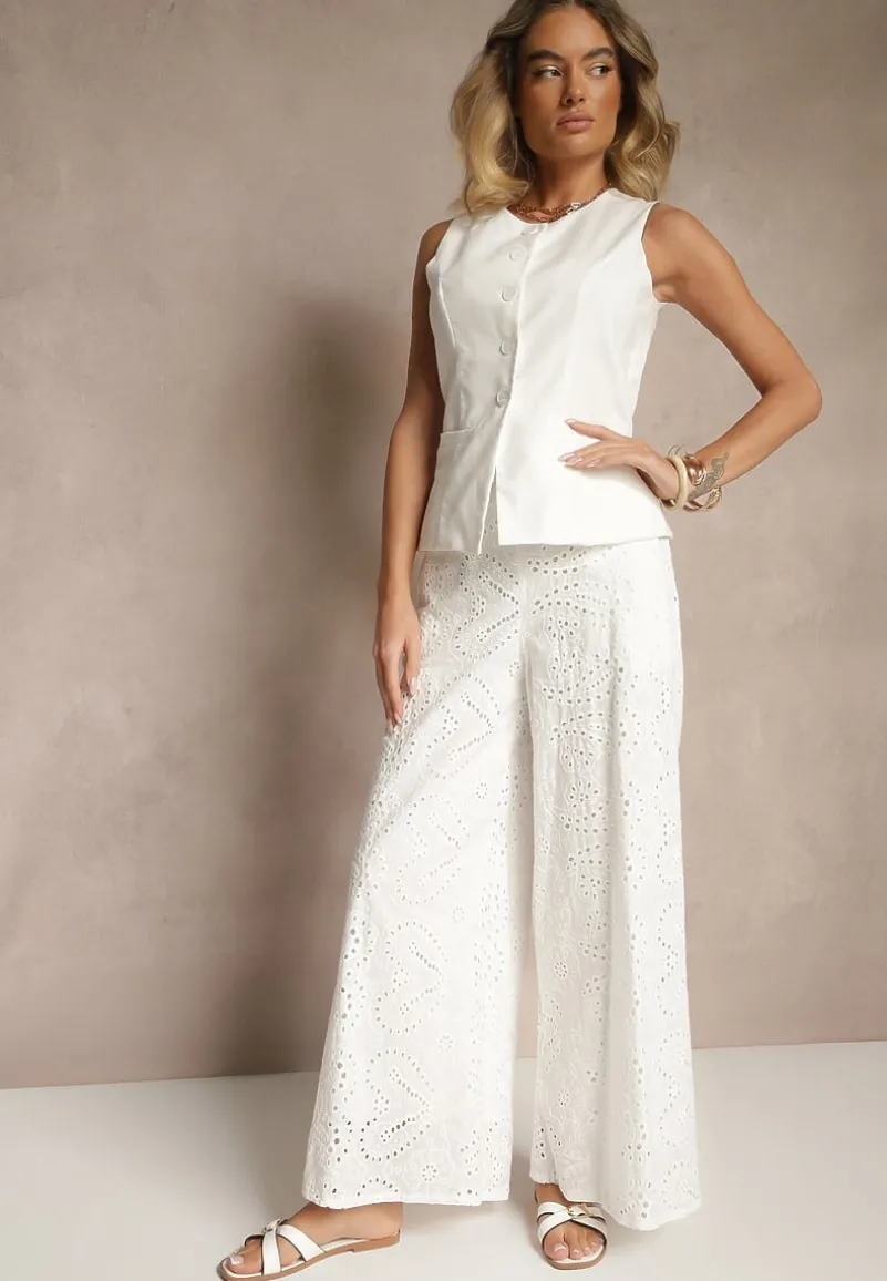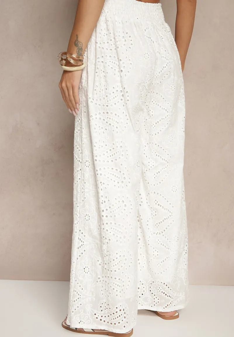 Odkryj swój wyjątkowy styl z Ażurowymi Spodnimi z Bawełny High Waist Evinassa! Te eleganckie spodnie o szerokim kroju z gumką w pasie z tyłu i wsuwanymi kieszeniami doskonale podkreślają talię, a ich ażurowy wzór dodaje lekkości i kobiecości każdej stylizacji. Idealne na codzienne wyjścia, połącz z casualowym t-shirtem i sneakersami na weekendowy spacer. Wybierz Evinassa i bądź zawsze na czasie!