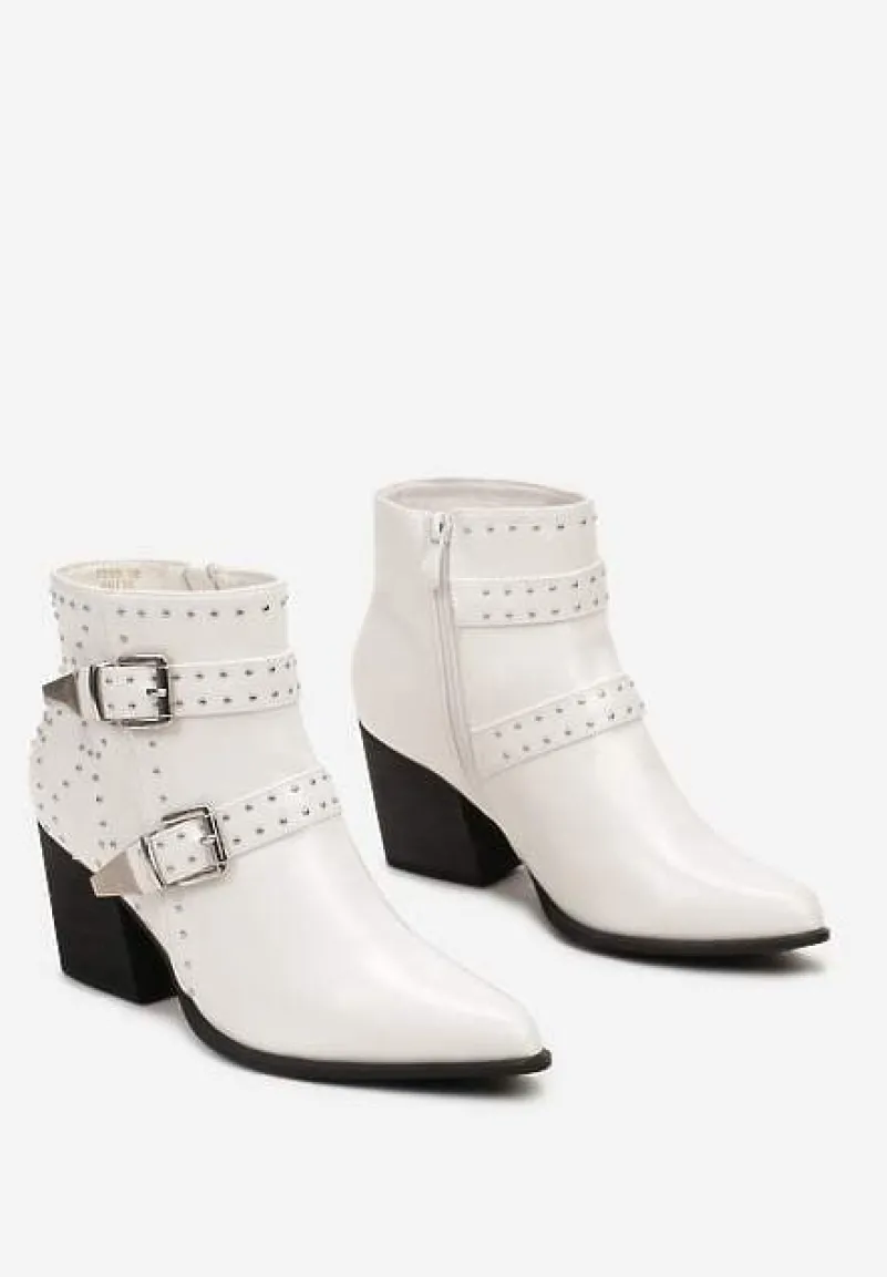 Botki na słupku Biker Terivian to idealny wybór dla kobiet, które poszukują stylowego obuwia na chłodniejsze dni. Obcas w stylu słupka gwarantuje stabilność podczas chodzenia. Noski tych botków mają klasyczny kształt, który pasuje do różnego rodzaju ubioru, natomiast zapięcie w postaci klamer i zamka błyskawicznego dodaje im charakteru i ułatwia zakładanie. Botki Terivian świetnie się wpisują w sezon jesienno-zimowy, a ich rockowy styl z nitami idealnie dopełni codzienną, miejską stylizację z jeansami i skórzaną kurtką.