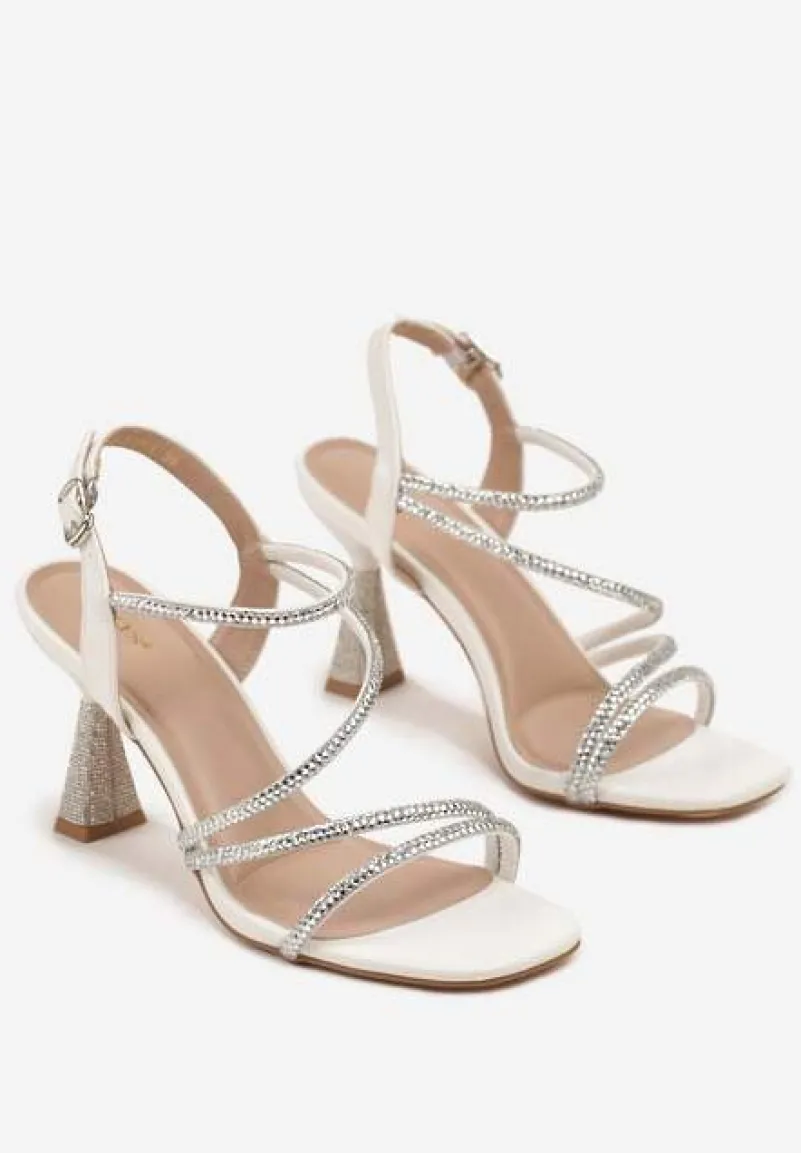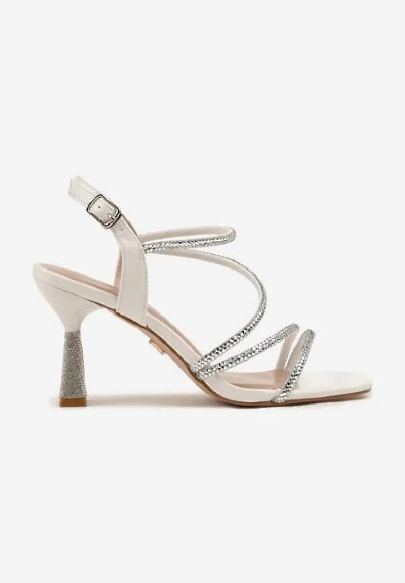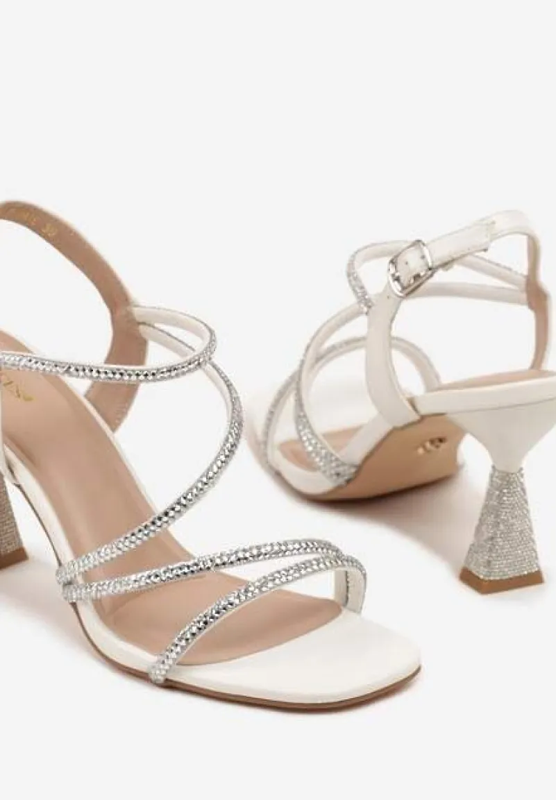 Białe Cyrkoniowe Sandały Vices na Stożkowym Obcasie Galitiela