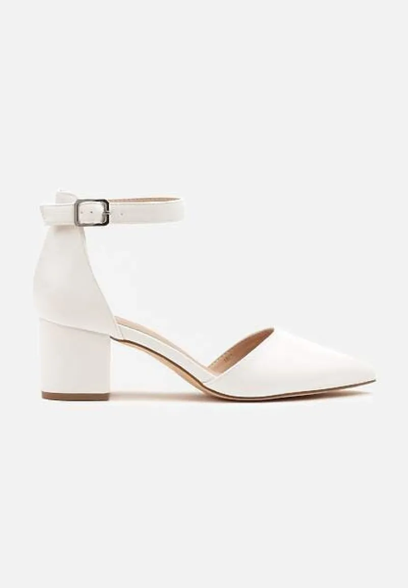 Białe Czółenka Sandały Vices na Słupku ze Skórzaną Wkładką Ozdobione Brokatem Leanelith