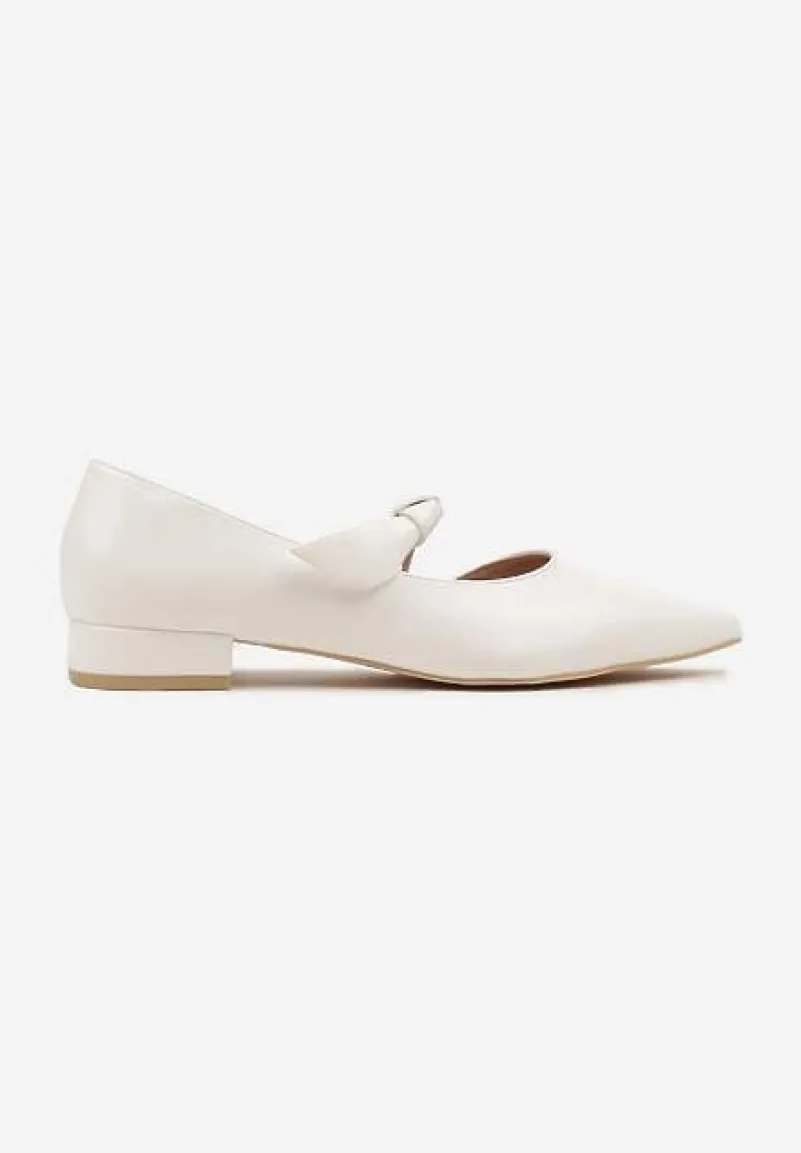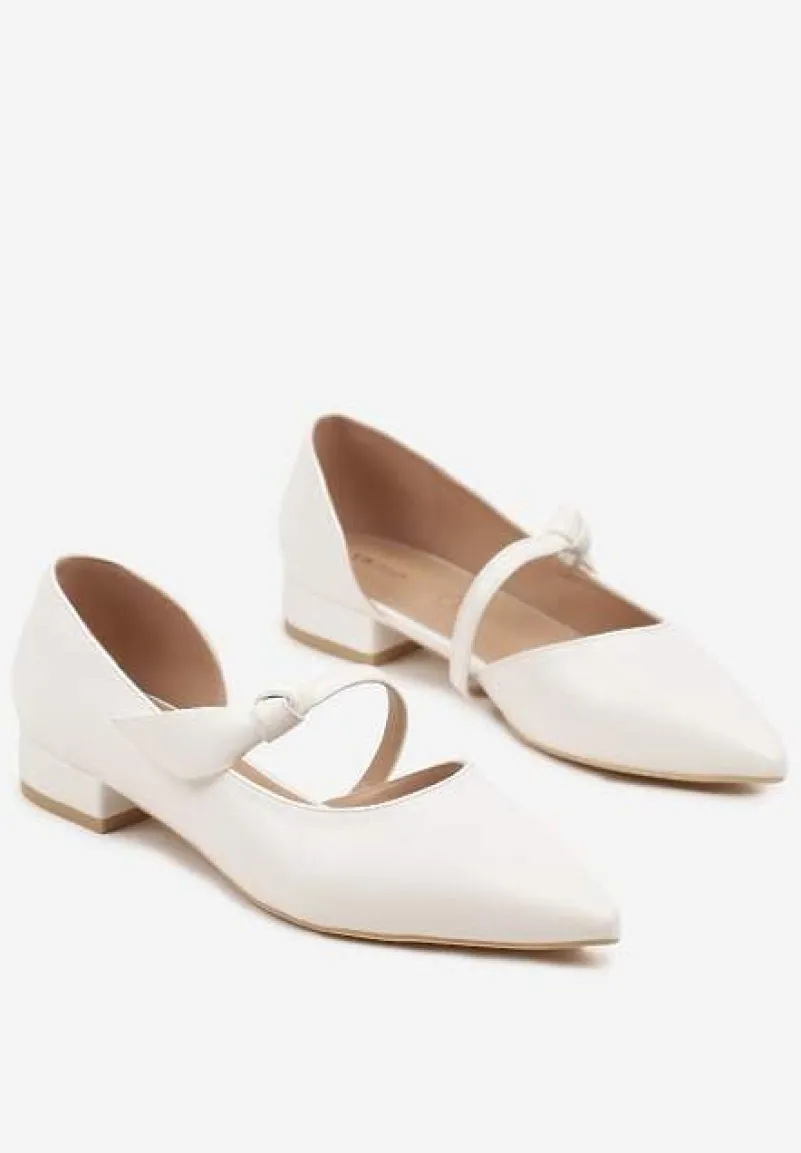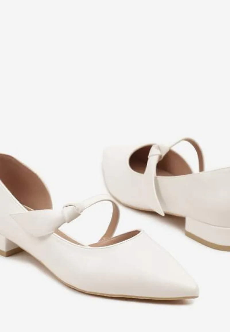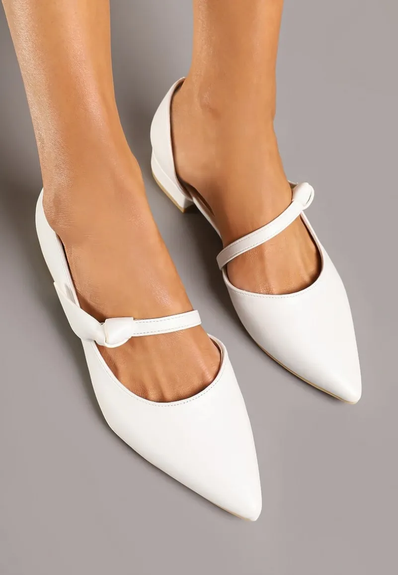 Białe Czółenka Vices na Płaskiej Podeszwie ze Skórzaną Wkładką z Supełkiem Liliarine