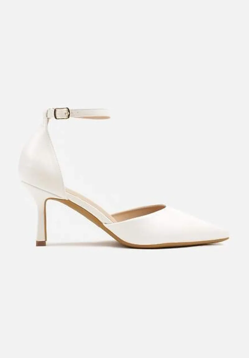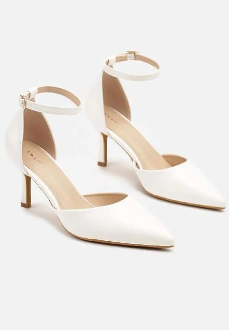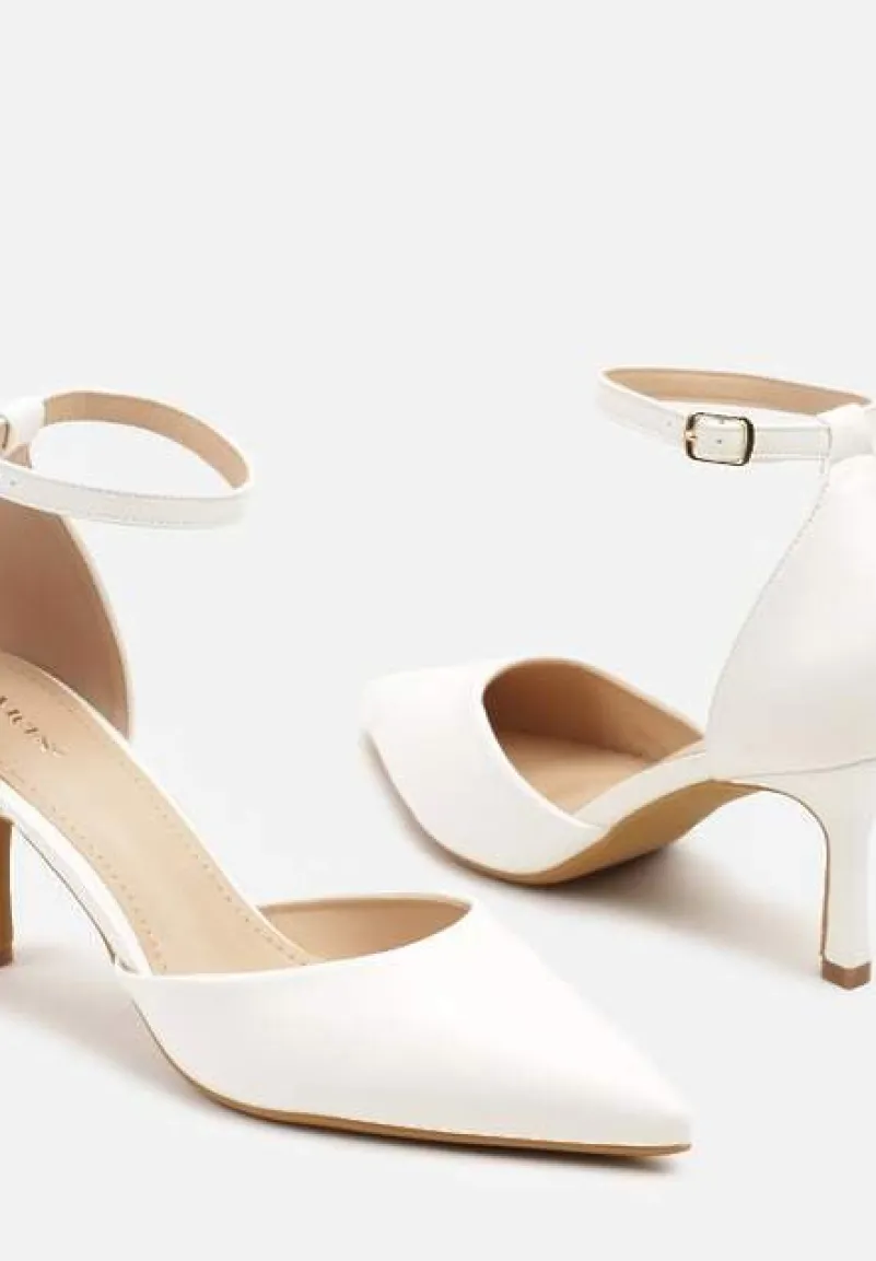 Białe Czółenka Vices na Szpilkowym Obcasie z Noskiem w Szpic i Sprzączką Ulandorea
