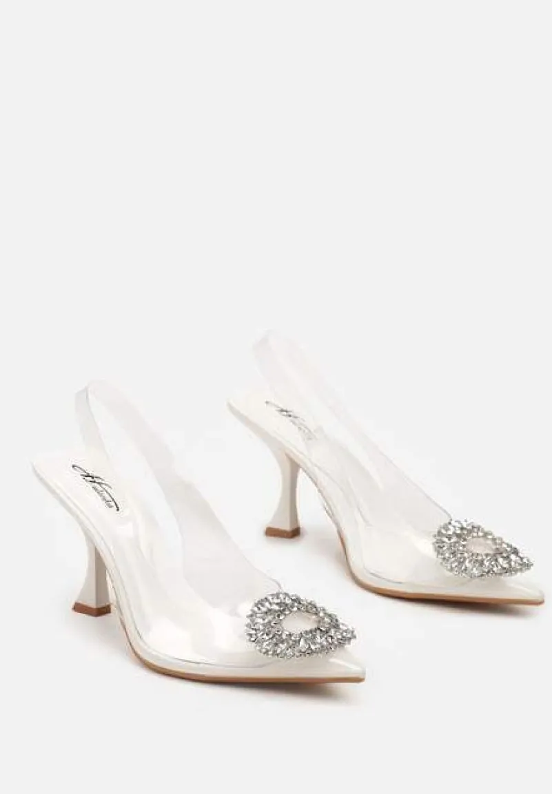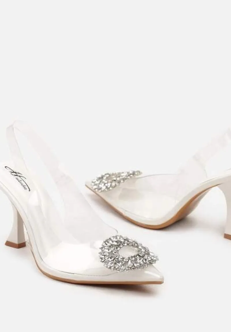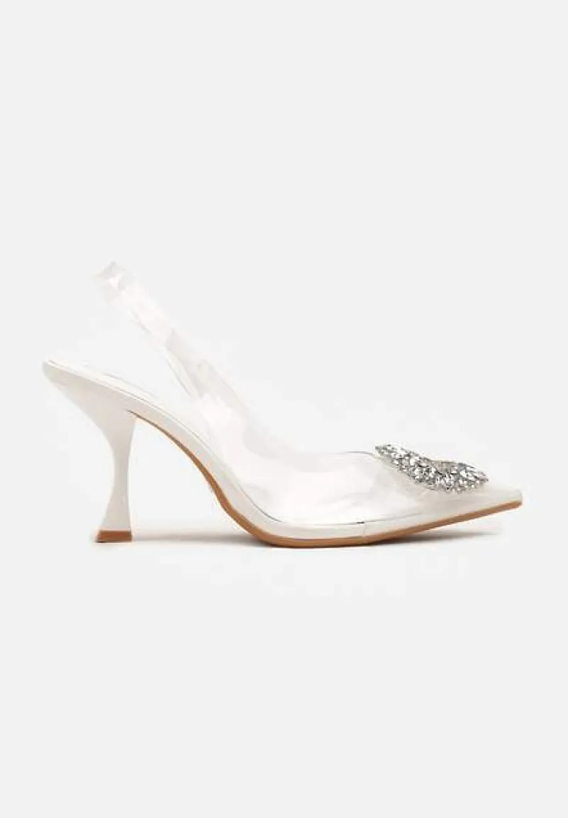 Białe Czółenka z Odkrytą Piętą i Transparentną Cholewką oraz Cyrkoniami Navieria