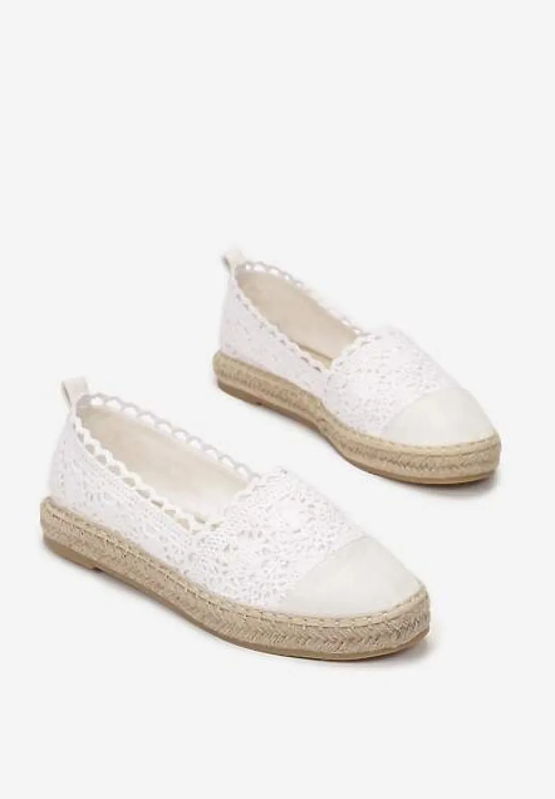 Espadryle Vylixis ozdobione ażurowym haftem na cholewce, z gładką wstawką na okrągłym nosku. Osadzone na podeszwie z warkoczykiem z juty. Wsuwane. Stworzone z materiału tekstylnego i ekozamszu. Espadryle Vylixis to uroczy, romantyczny model – idealny na lato!