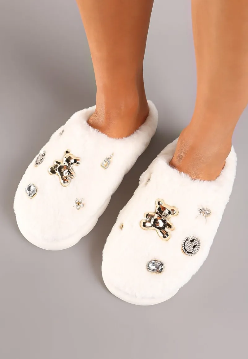 Odkryj styl z kapciami Nirissa, które idealnie wpiszą się w casualowe, jak i eleganckie domowe stylizacje. Płaska podeszwa zapewni stabilność na każdym kroku. Subtelnie zaokrąglony nosek nadaje butom ponadczasowy charakter. Metaliczne aplikacje dodają kapciom Nirissa odrobiny blasku, idealnego na sezon jesienno-zimowy. Stylistyczny tip? Połącz je z aksamitnym szlafrokiem i satynowymi spodniami na leniwe popołudnie, albo załóż je do Twojej ulubionej sukienki, aby błyszczeć nawet podczas domowego przyjęcia.