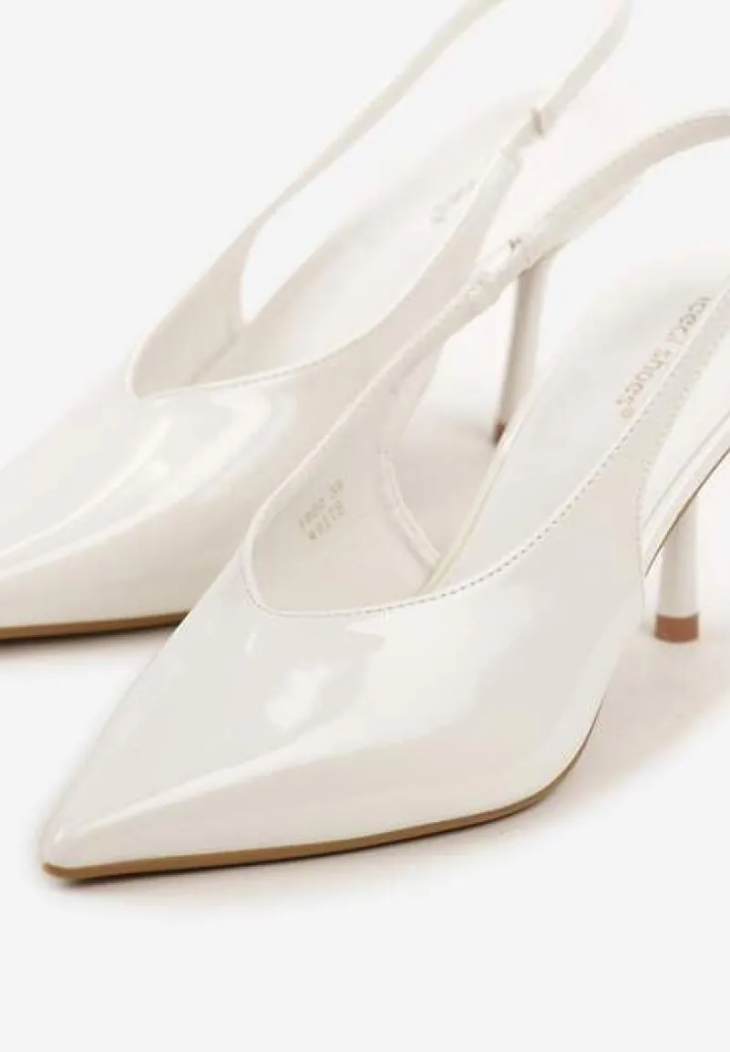 Białe Lakierowane Sandały na Szpilce Typu Slingback Addoxie