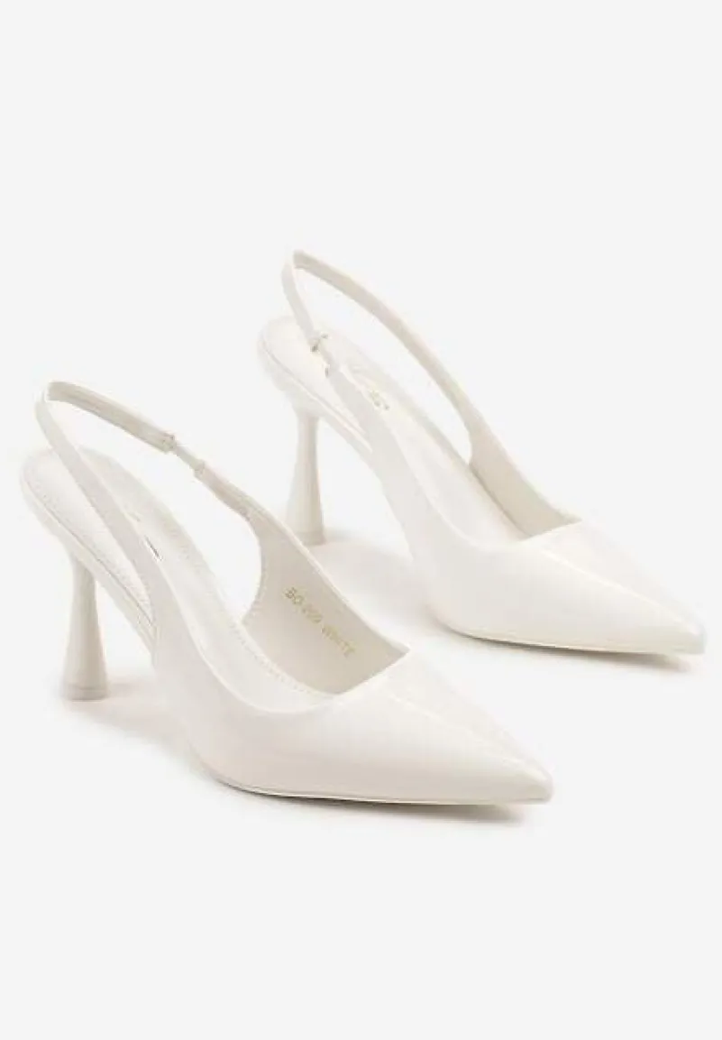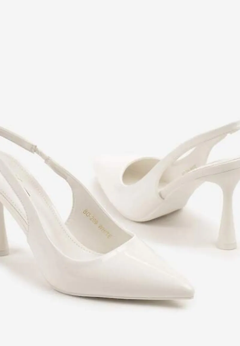 Białe Lakierowane Sandały Szpilki Typu Slingback Ulios