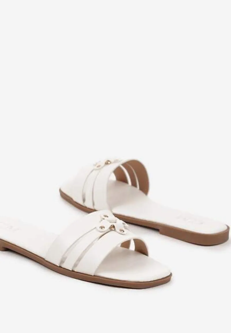 Minimalistyczne Klapki Zdobione Elegancką Aplikacją Harinel to wyjątkowe połączenie ponadczasowej klasy z najnowszymi trendami. Płaska podeszwa zapewnia komfort noszenia, podczas gdy ozdobna aplikacja dodaje szyku i nietuzinkowego charakteru. Wypróbuj je w połączeniu z lnianymi spodniami palazzo i dopasowanym topem na co dzień lub w zestawie z rozkloszowaną sukienka maxi i plecioną torebką na formalne wyjścia. To doskonały wybór na każdą okazję!