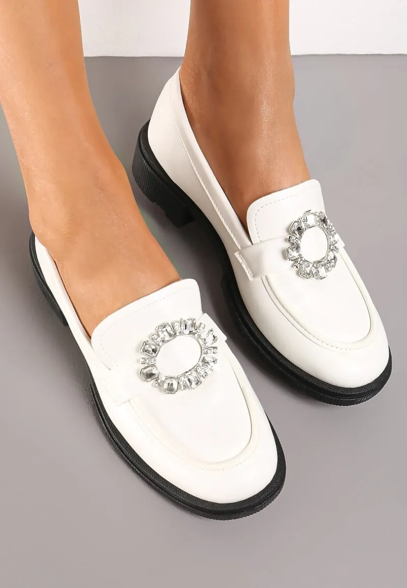 Mokasyny Tarinni z błyszczącą klamrą z cyrkoniami. Wykonane z gładkiej ekoskóry. Pięknie wyróżnią każdą elegancką stylziację!