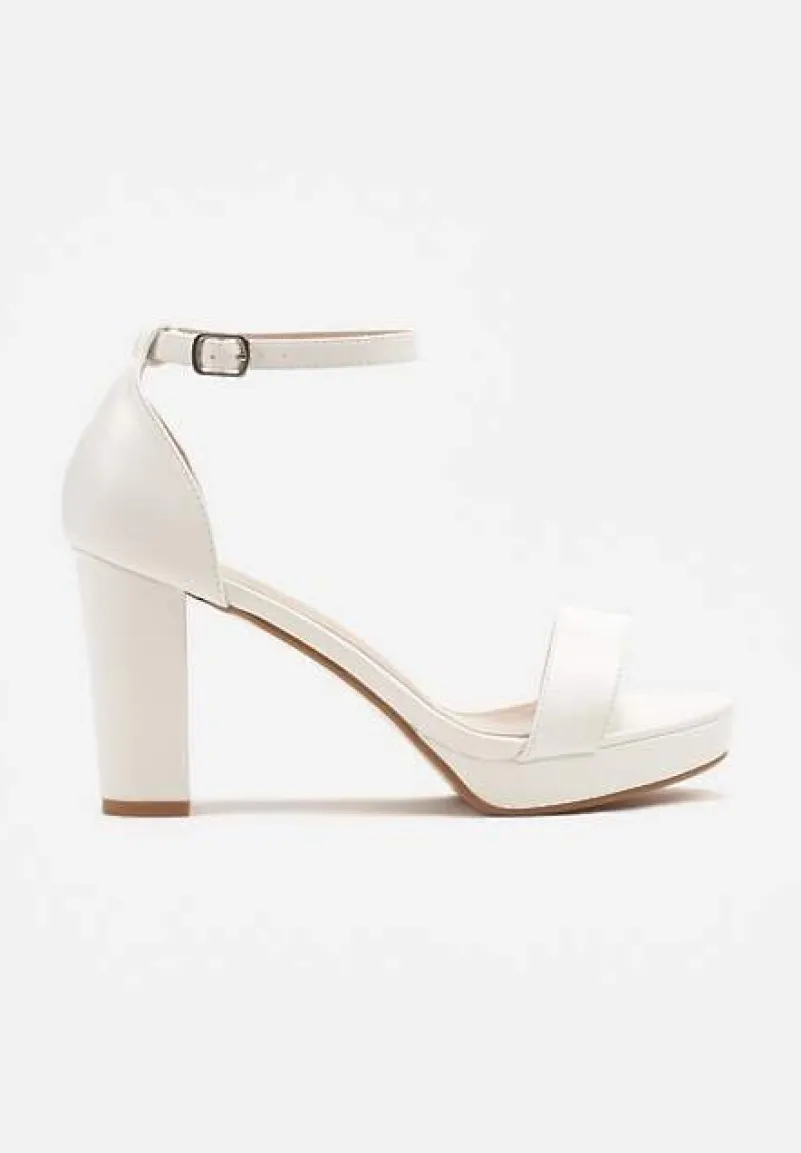 Białe Sandały na Platformie i Słupku z Ozdobnym Paskiem Sdivana