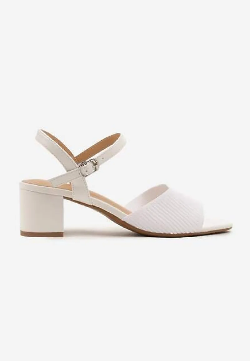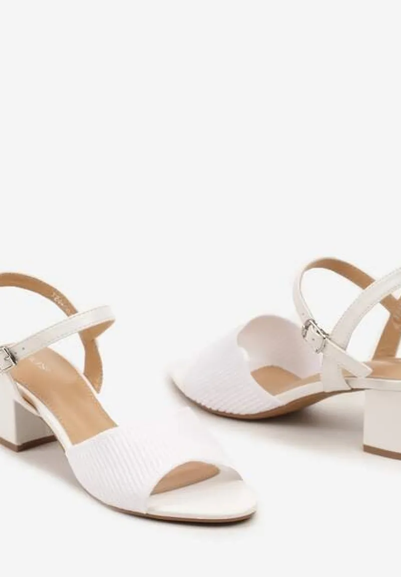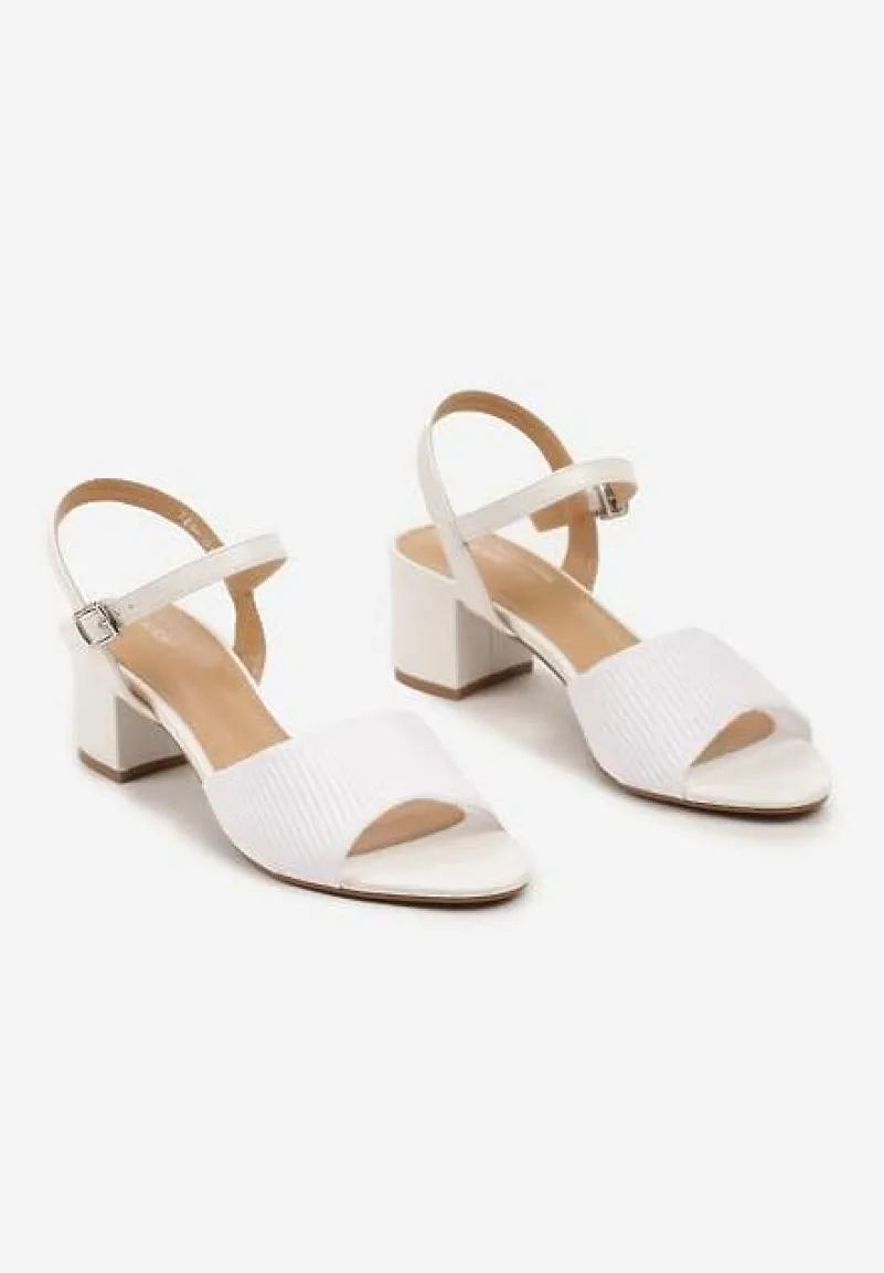 Białe Sandały na Słupkowym Obcasie z Tłoczeniem na Pasku Natissa
