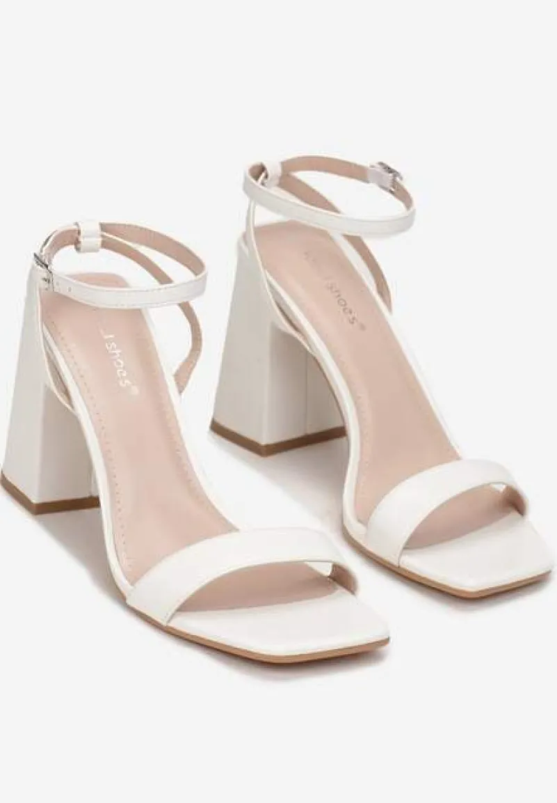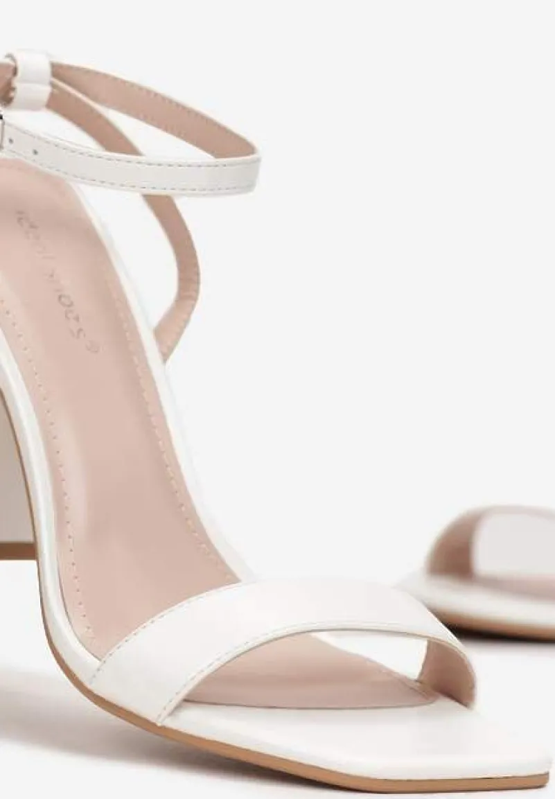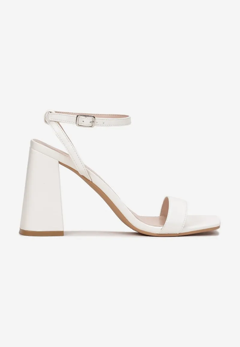 Białe Sandały na Stożkowym Obcasie ze Sprzączką Arke