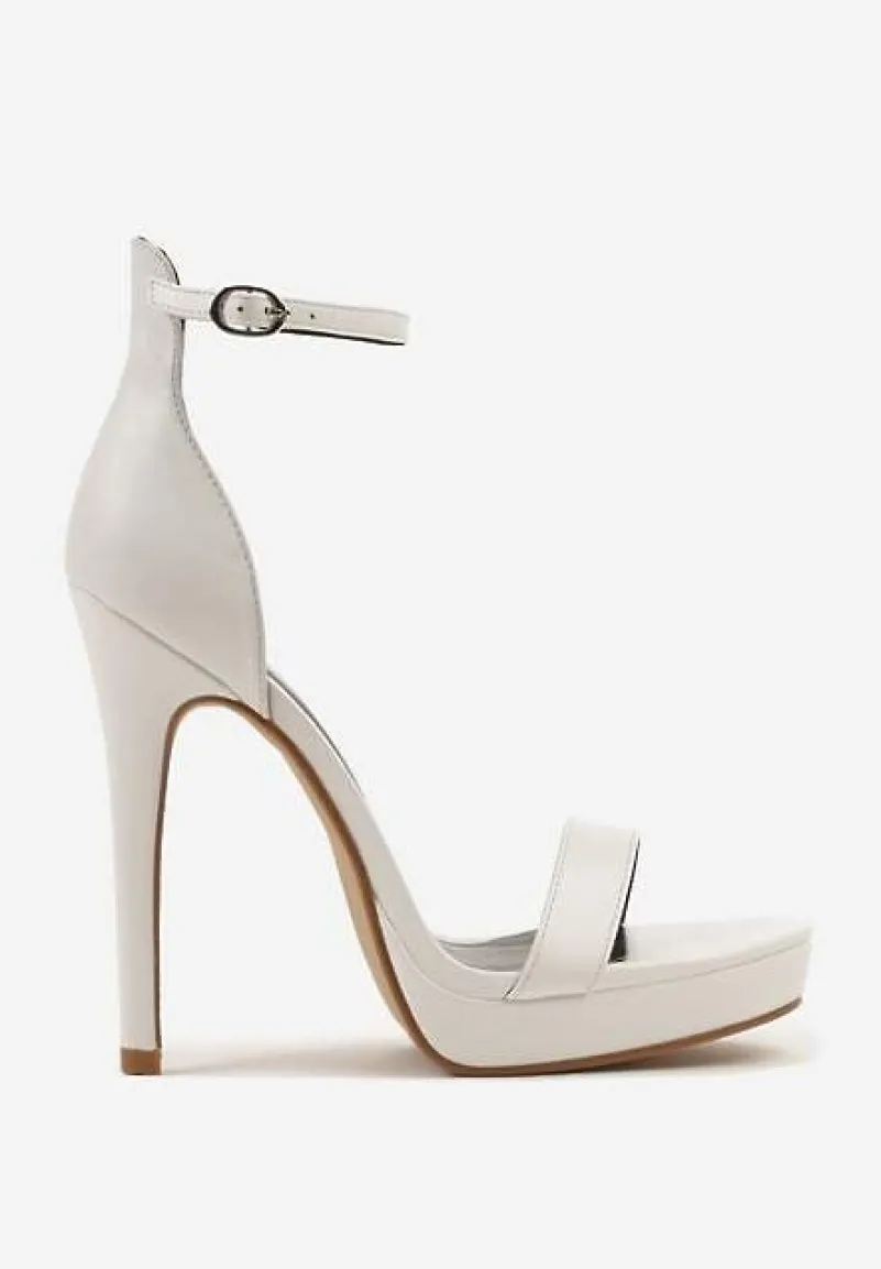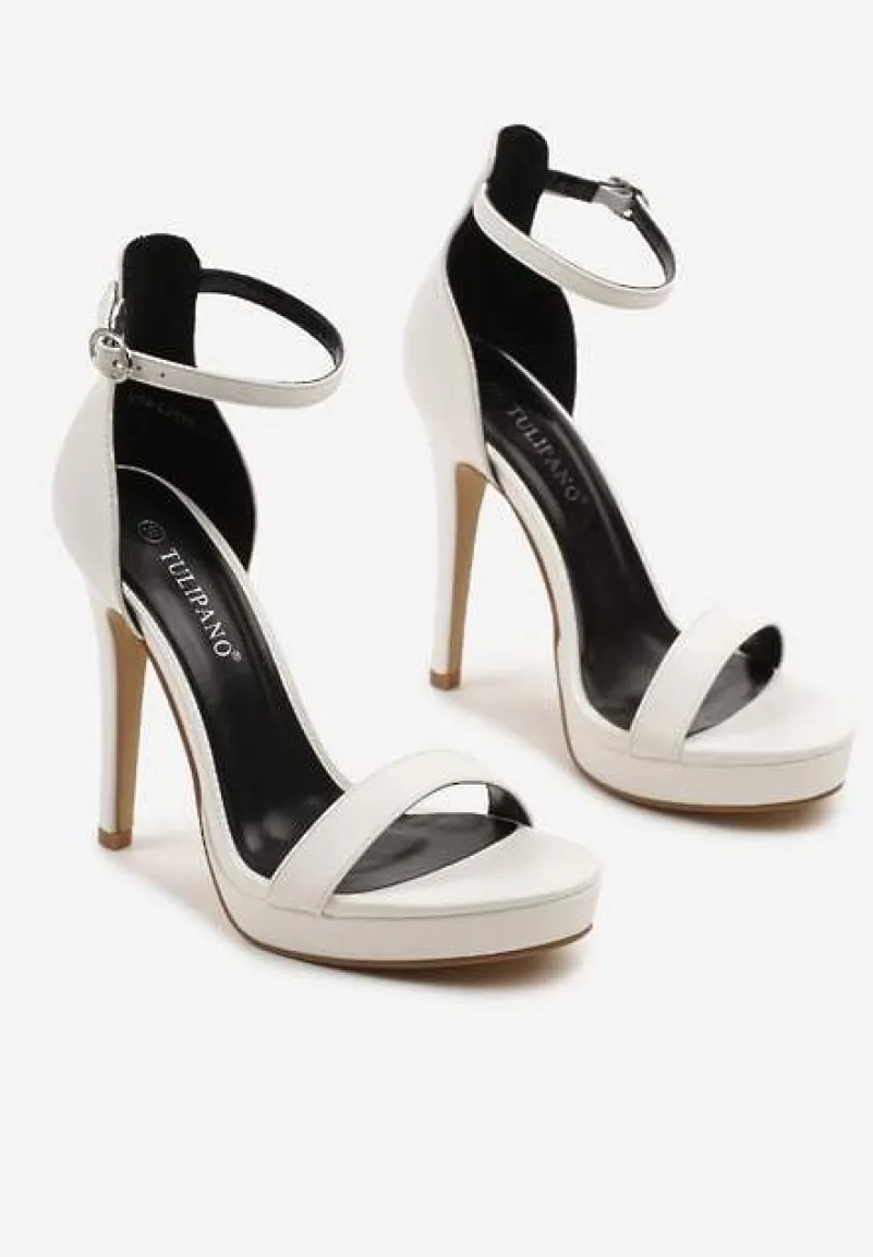 Białe Sandały na Szpilce i Platformie z Paskiem Wokół Kostki Napelle