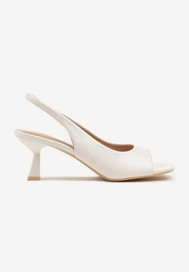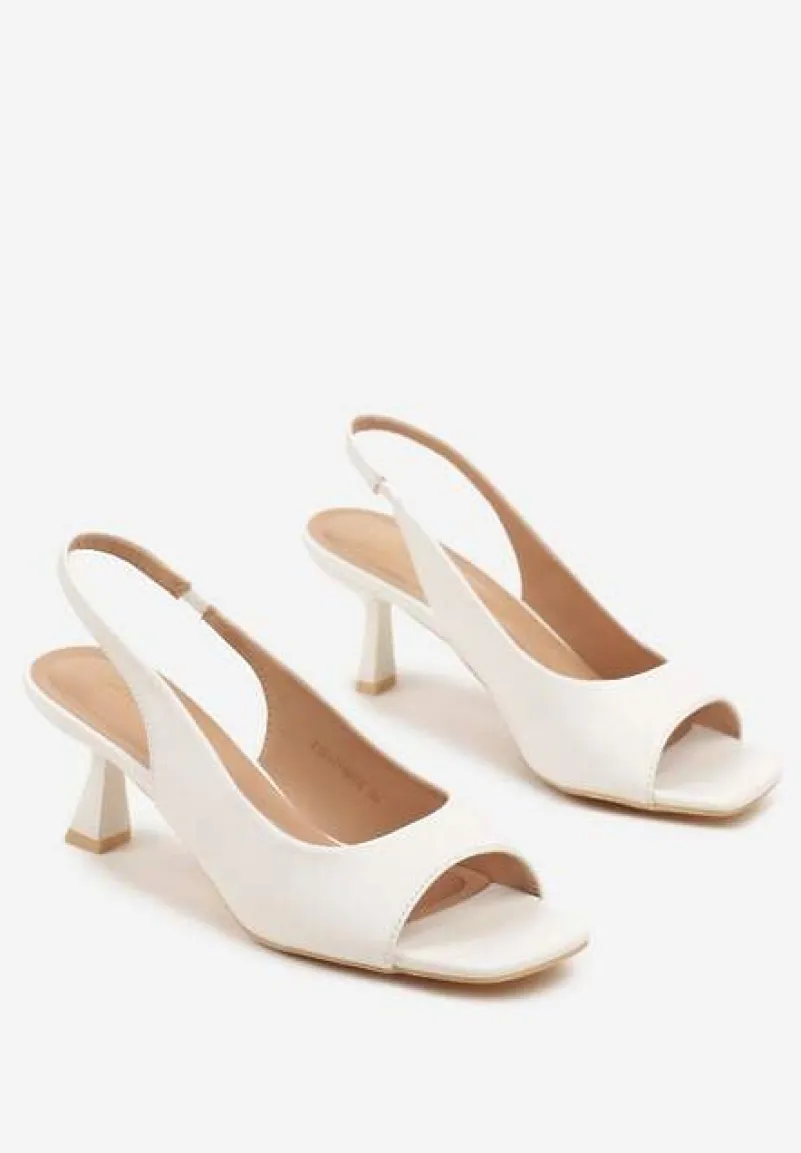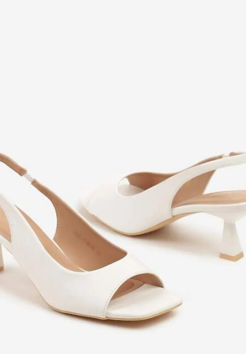 Białe Sandały na Szpilce Vices Ozdobione Kwadratowym Noskiem Edianira