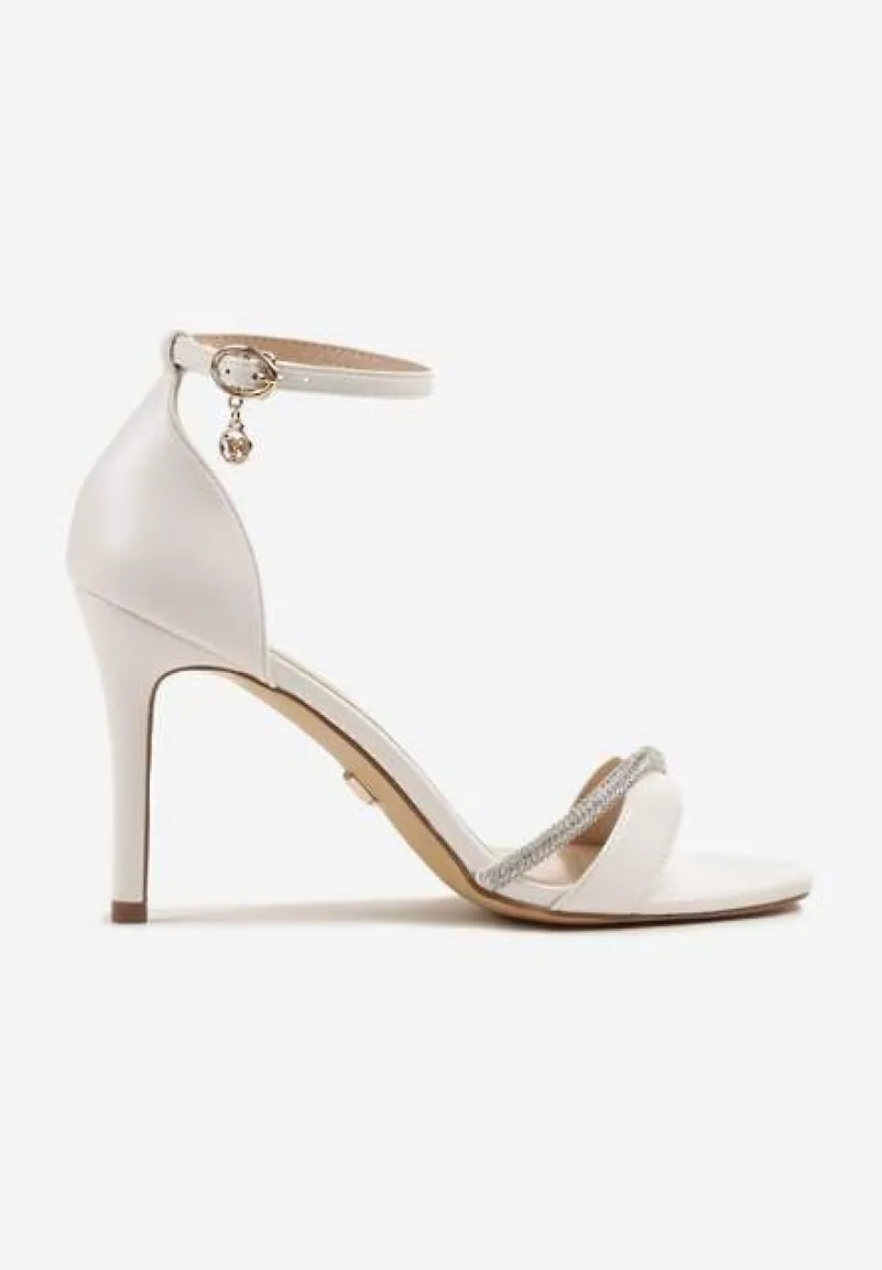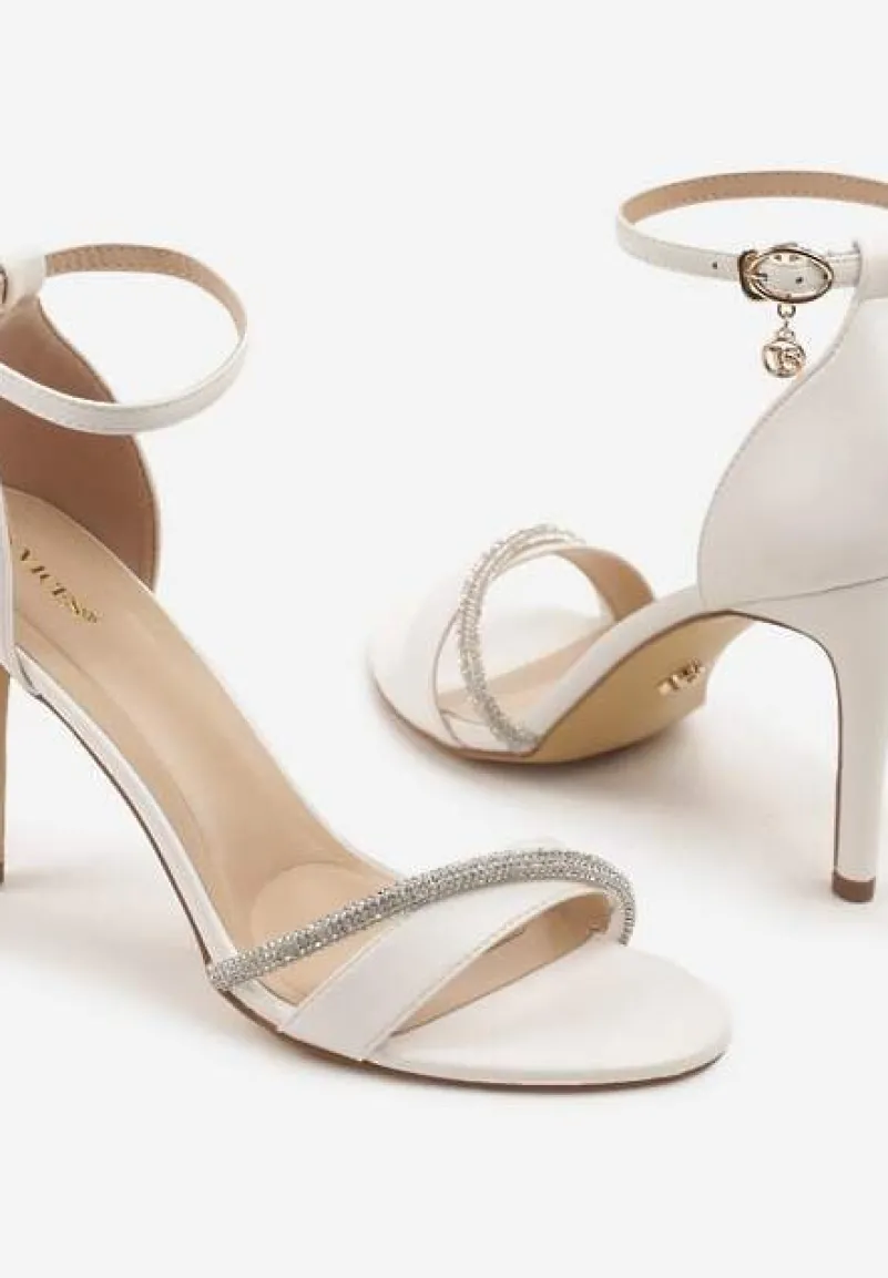 Białe Sandały na Szpilce Vices Ozdobione Paskiem z Cyrkonii Linarunia