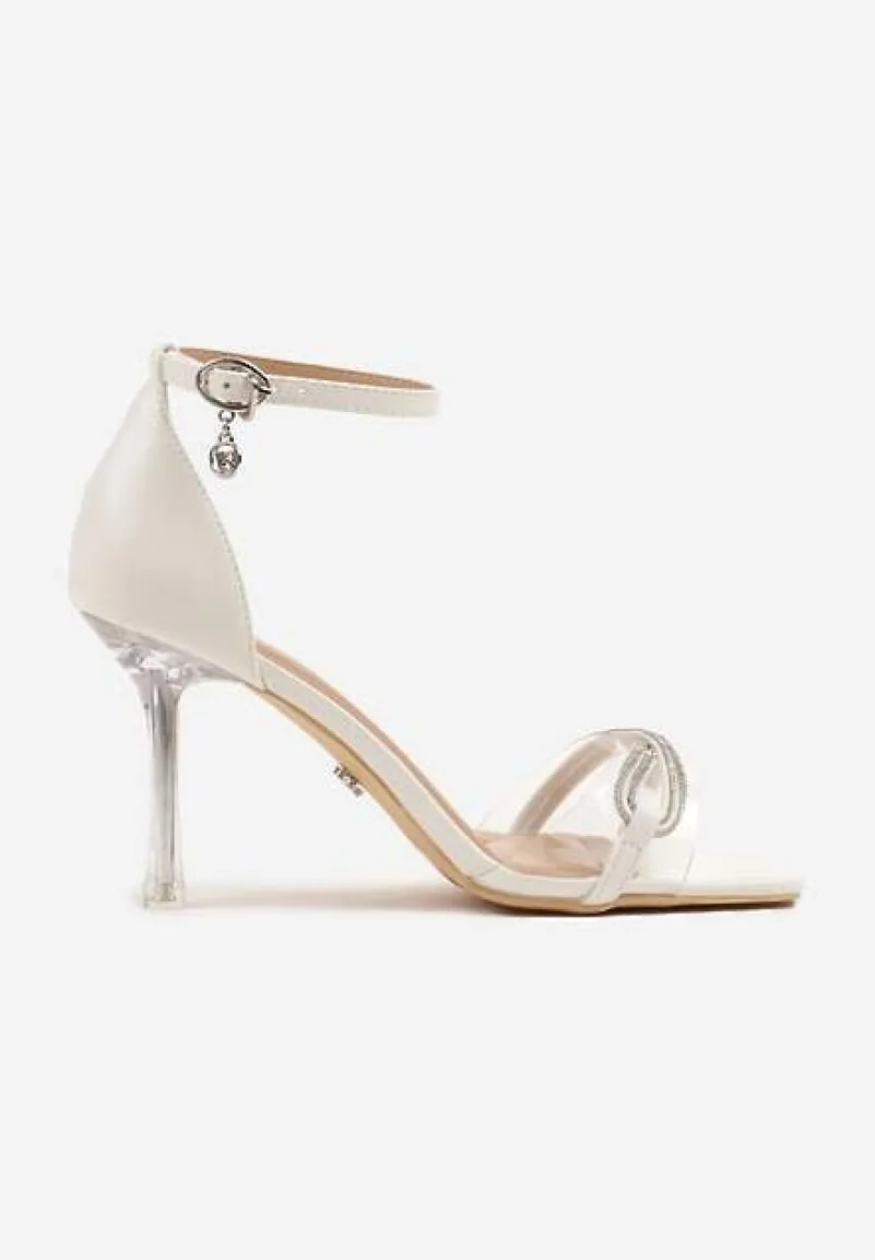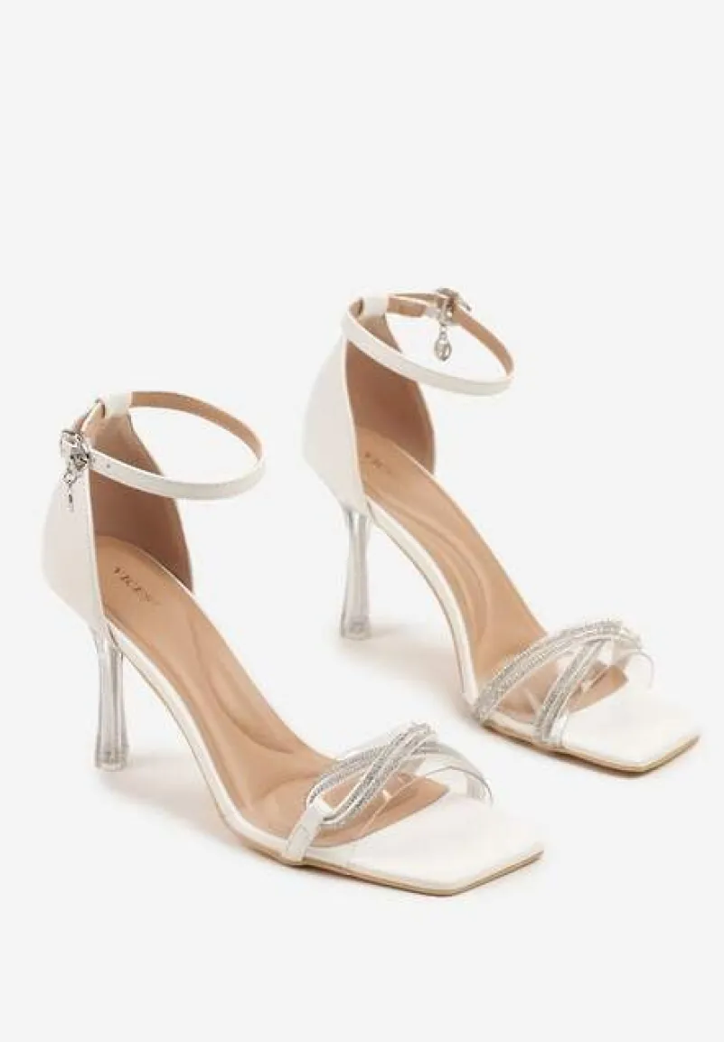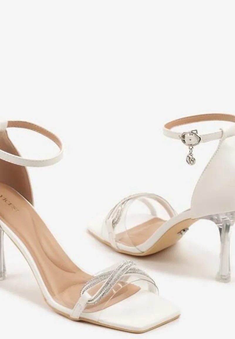 Białe Sandały na Szpilce Vices z Cyrkoniami i Przezroczystą Cholewką Edivinia