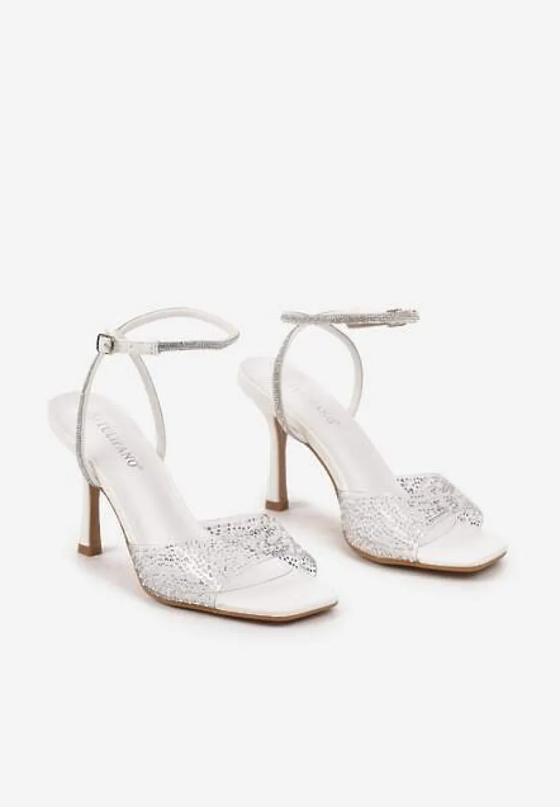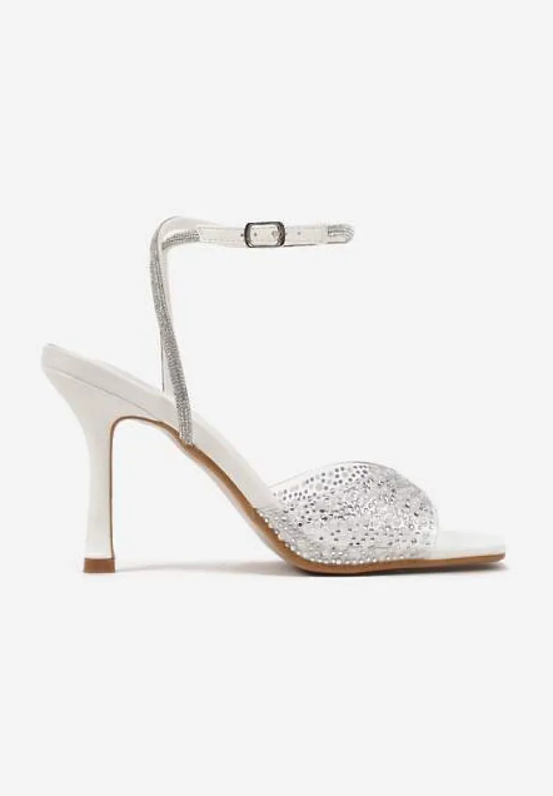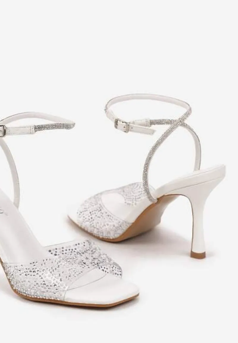 Białe Sandały na Szpilce z Cyrkoniami i Przezroczystą Cholewką Fidanalia
