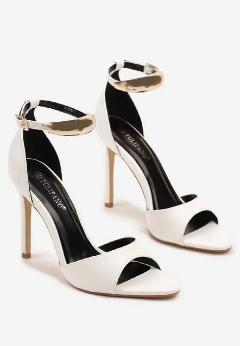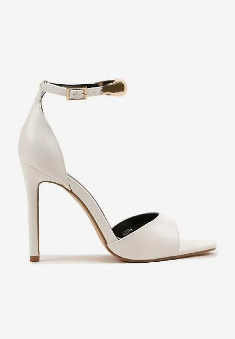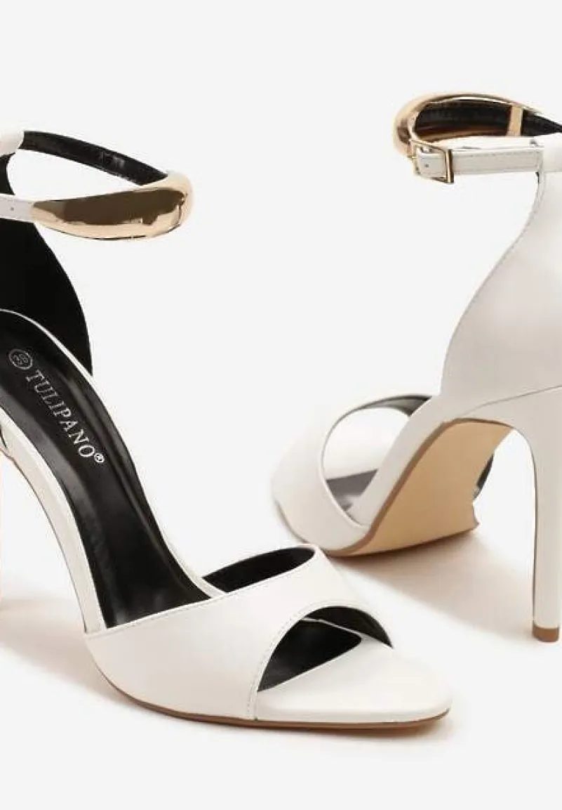 Białe Sandały na Szpilce z Eleganckim Zdobieniem przy Kostce Idarelle