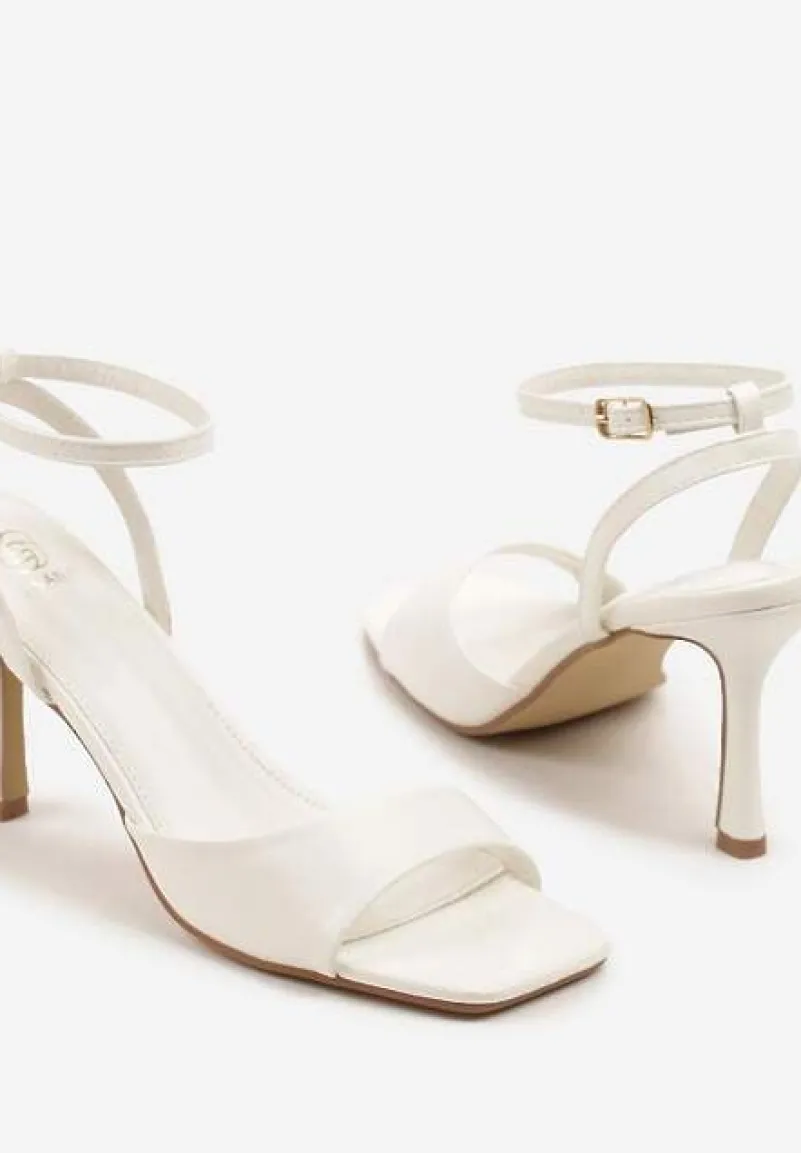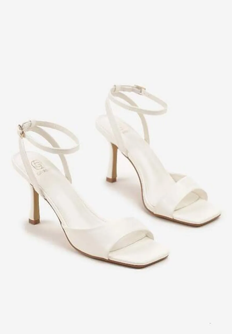 Białe Sandały na Szpilce z Noskiem o Kwadratowym Kształcie i Paskiem z Klamerką Meviora
