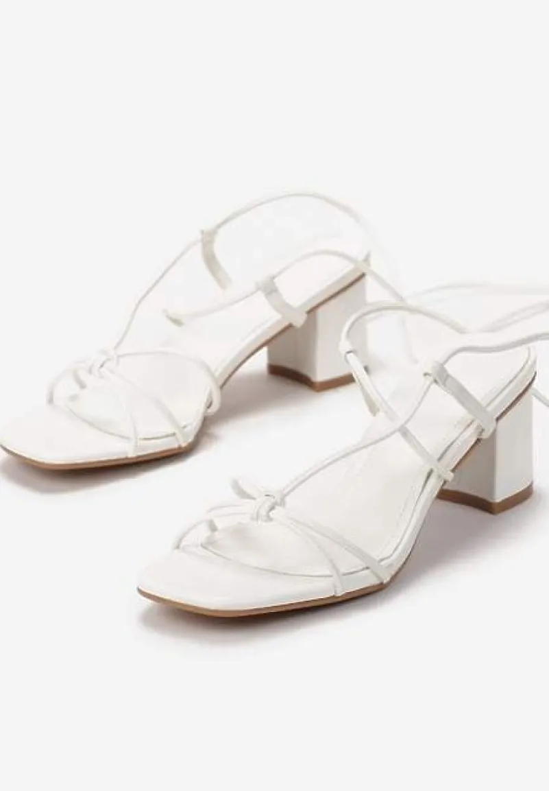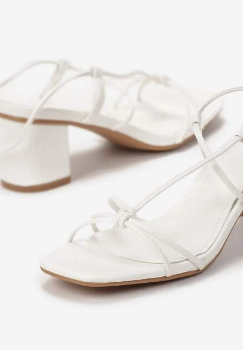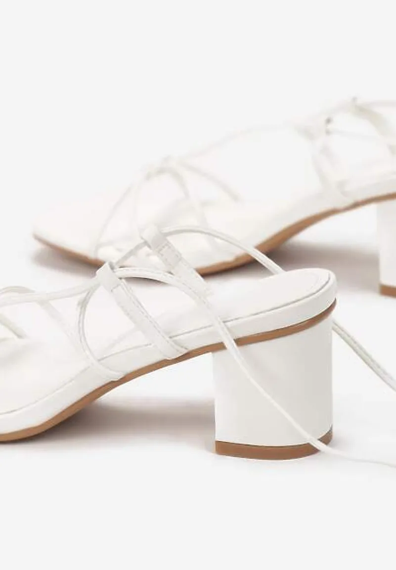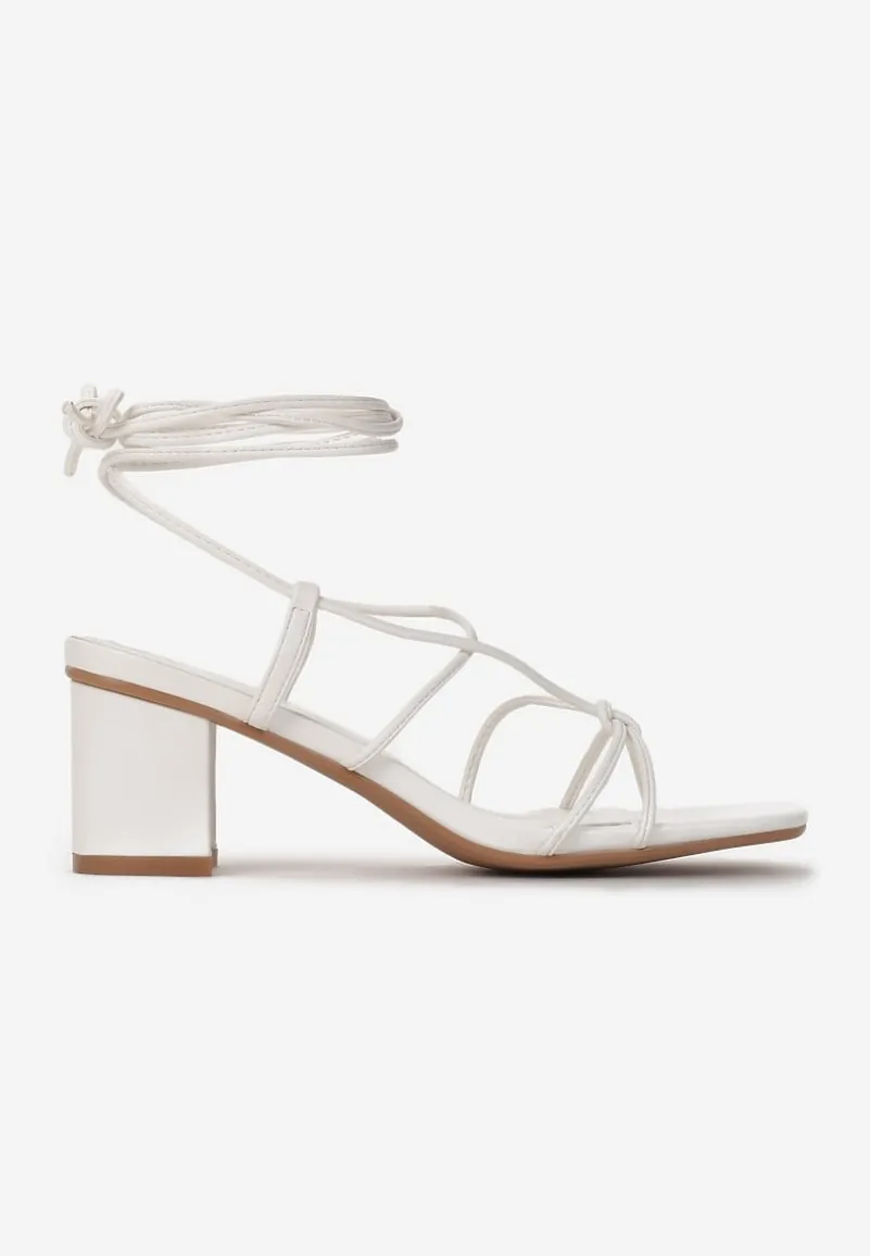 Sandały Rhodike na niewysokim słupku. Cholewka wykonana z cienkich paseczków. Wiązane na rzemyki wokół kostki – możesz tworzyć z nich różne kompozycje! Przy palcach mały supełek. Utrzymane w jednolitej kolorystyce. Wykonane z gładkiej ekoskóry, łącznie z wkładką. Otwarty, kwadratowy nosek. Będą idealnie leżeć na wąskiej stopie. To hit wśród letnich sandałów – musisz je mieć!