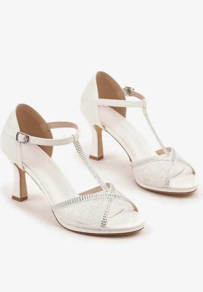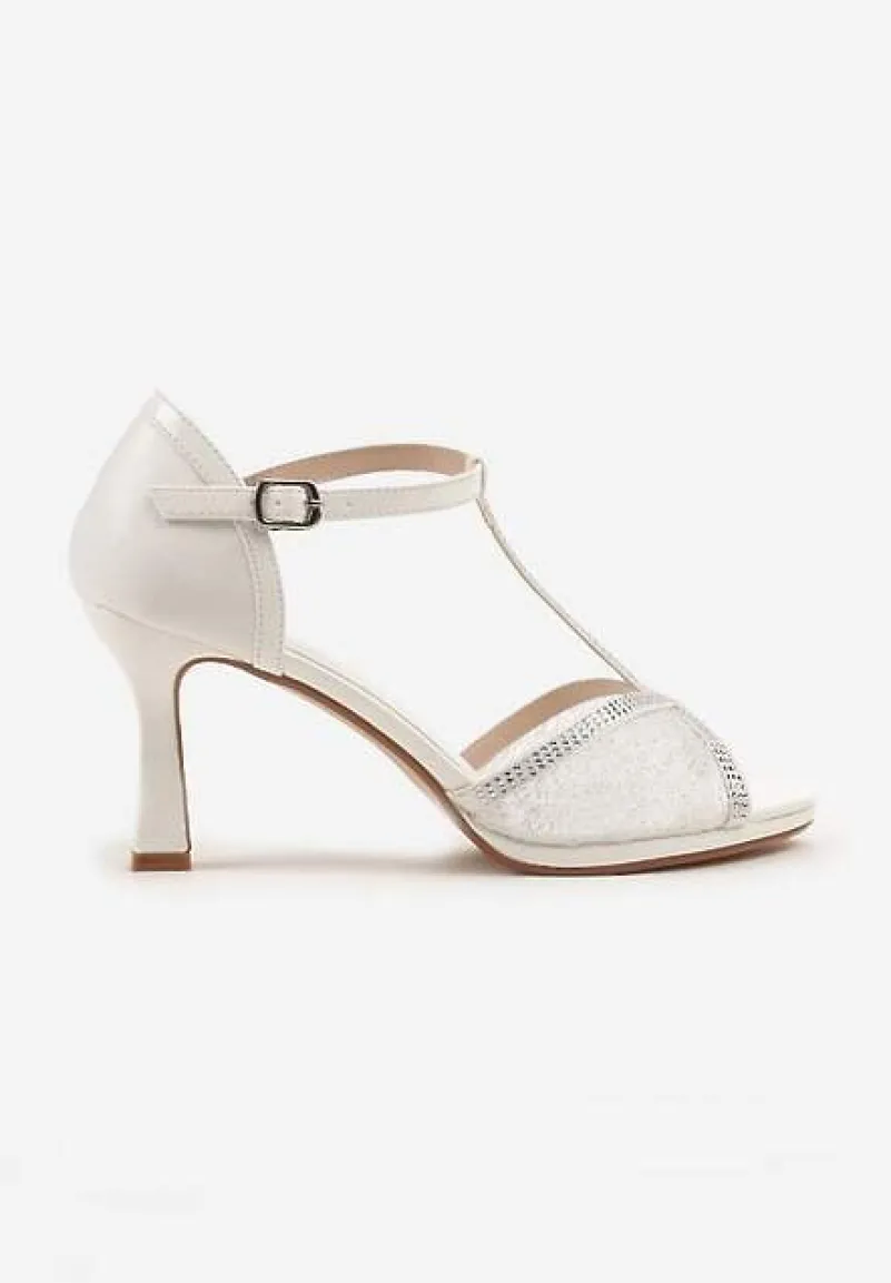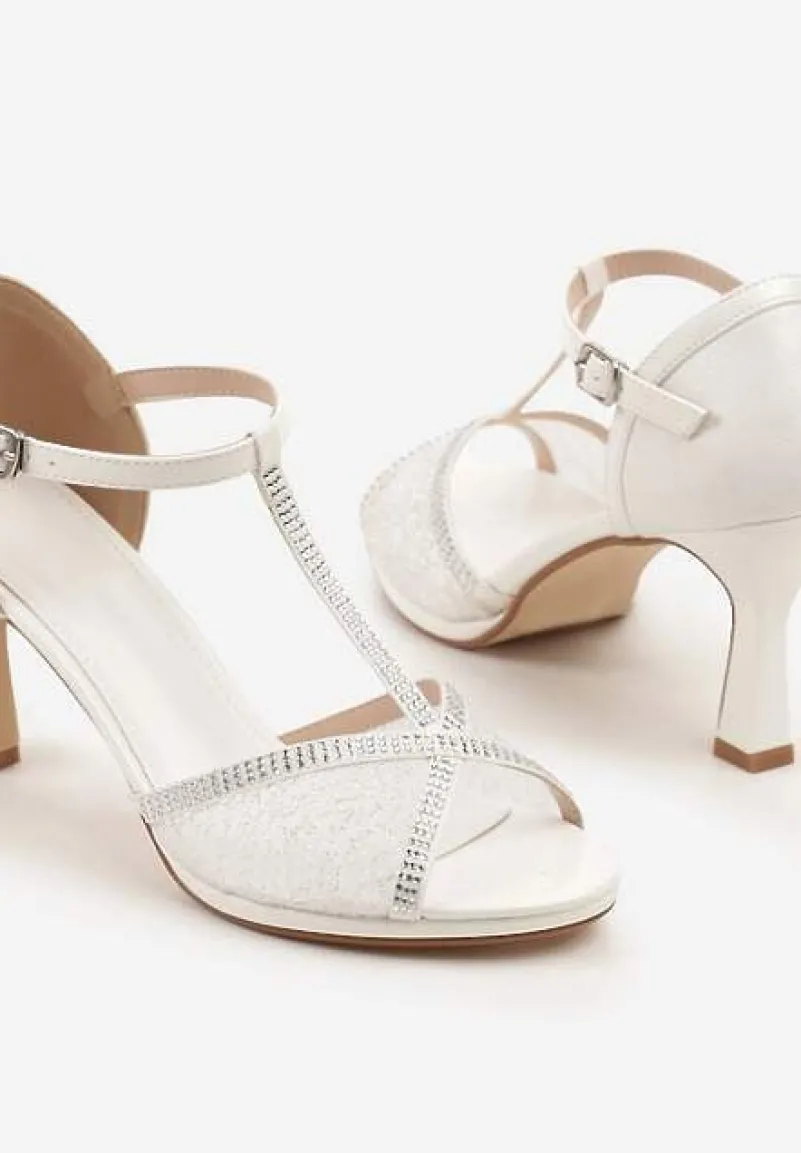Białe Sandały Vices na Szpilce Klepsydrze z Cyrkoniami Folaniva