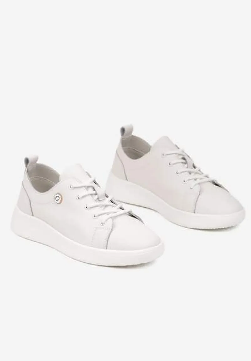 Skórzane Sneakersy Zdobione Minimalistyczną Aplikacją Velotina to znakomity wybór dla kobiet, które uwielbiają modowe eksperymenty. Płaska podeszwa zapewnia komfort noszenia, a zapięcie na sznurówki dodaje sportowego charakteru. Design bez zbędnych zdobień sprawia, że buty te doskonale wpisują się w minimalistyczny styl, a zaokrąglony nosek dodaje im subtelnej elegancji. Na co dzień zestaw je z ulubionymi jeansami i oversize’ową bluzą, a na wieczorne wyjście z dopasowaną sukienką i biżuterią. Wykonanie ze skóry naturalnej zapewni komfort noszenia. Musisz je mieć!