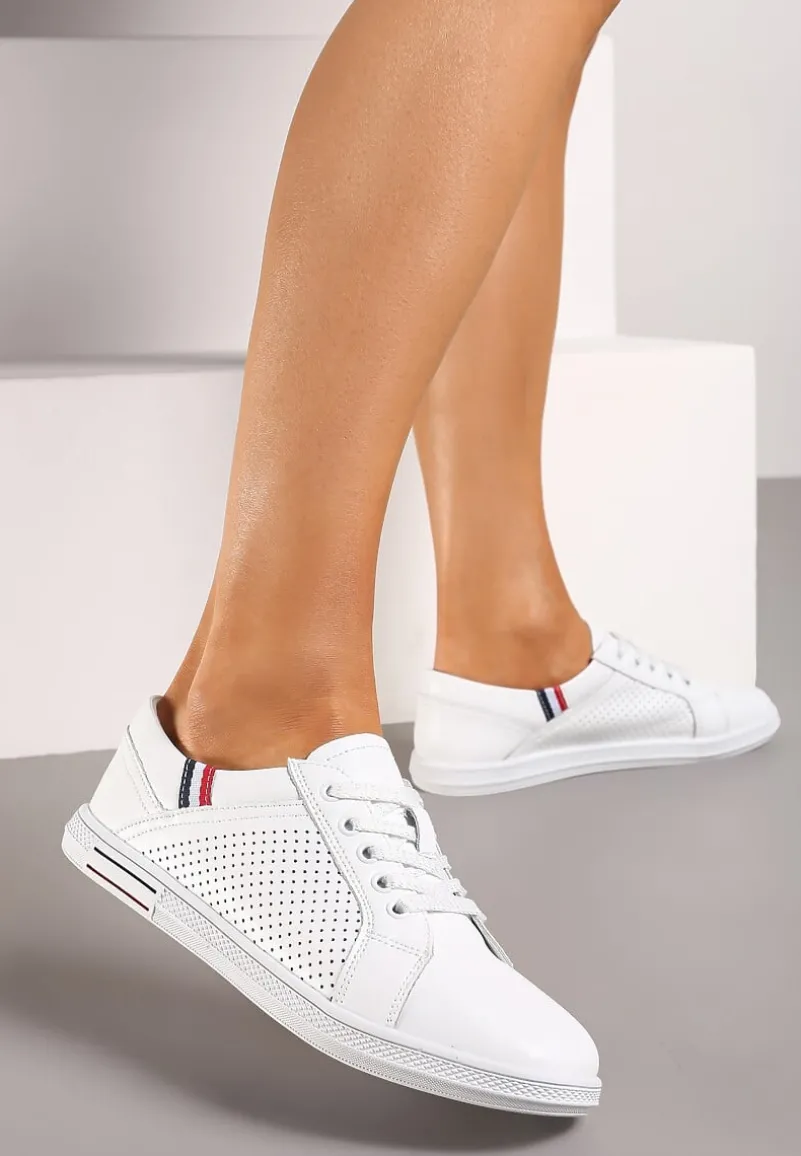 Stylowe – oto Yerbia, płaskie tenisówki, które doskonale odnajdą się w garderobie każdej miłośniczki modowych trendów. Wykonane ze skóry, zapewniają stabilność na każdym kroku. Okrągły nosek oraz oryginalne ozdobne sznurówki nadają niebanalnego charakteru, a delikatna perforacja dodaje lekkości. Idealne na wiosenno-letnie przejażdżki rowerowe w połączeniu z jeansami i luźnym t-shirtem, ale również na wieczorne spotkania z przyjaciółmi, gdzie będziesz błyszczeć w połączeniu z plisowaną spódnicą i eleganckim topem.