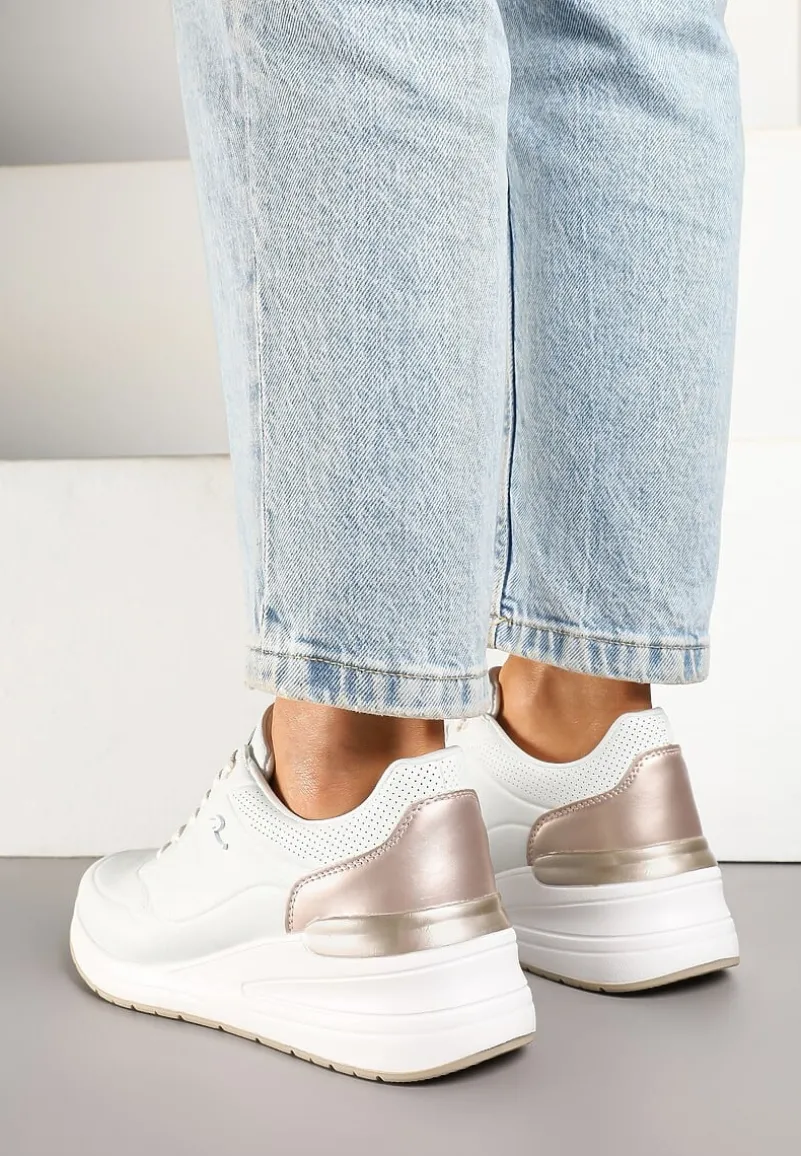 Sneakersy na Koturnie Zdobione Tłoczeniami i Aplikacją Marovea to idealny wybór dla kobiet, które pragną dodać każdej swojej stylizacji wyjątkowego charakteru! Te subtelne buty na koturnie łączą w sobie modny styl z wygodą, a ich oryginalne tłoczenia oraz aplikacje przyciągają wzrok. Dzięki uniwersalnemu designowi ze sznurowaną cholewką będą doskonałym uzupełnieniem zarówno casualowych, jak i eleganckich outfitów – zestaw je z jeansami i bluzą na co dzień lub z dopasowaną sukienką i ramoneską na wieczorne wyjście. Marovea to sneakersy, które zagwarantują Ci pewność siebie w każdej sytuacji!