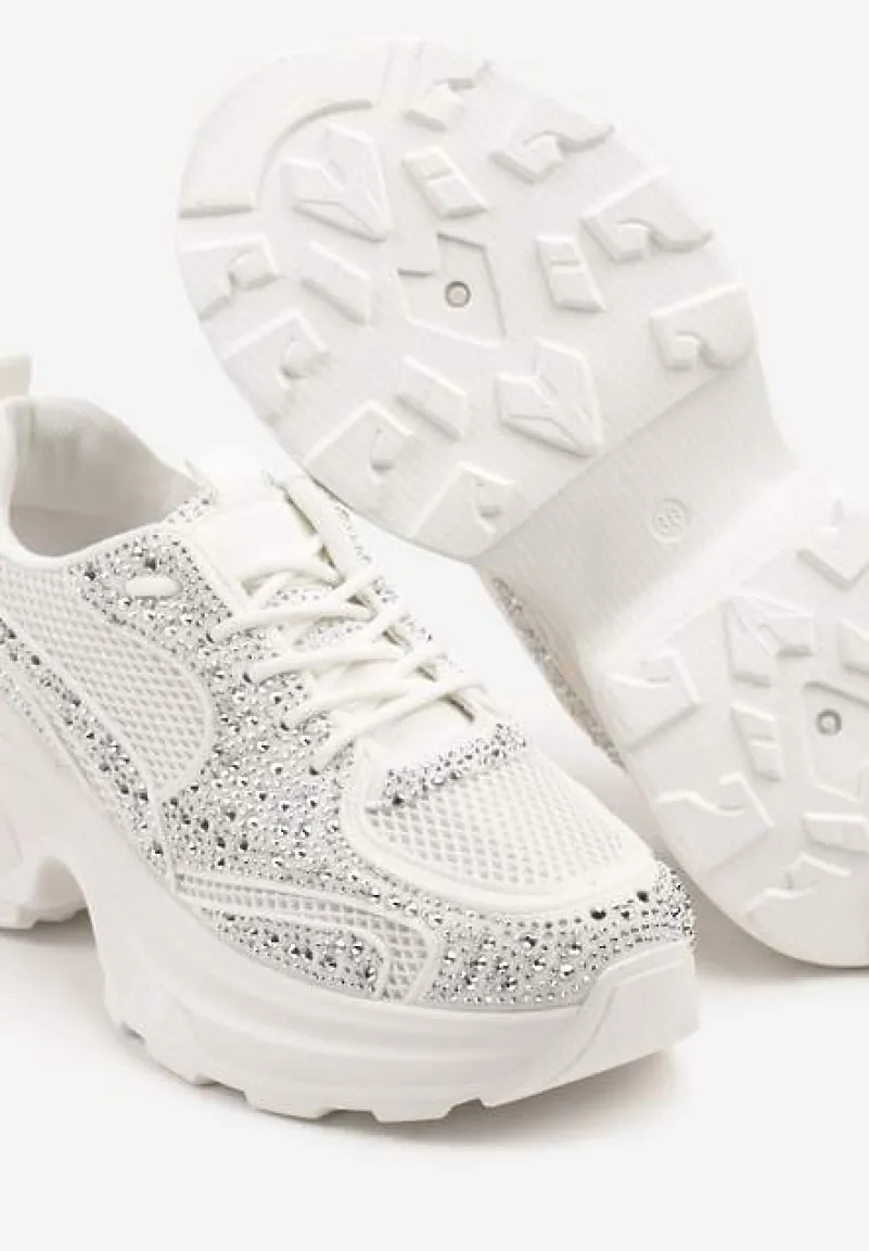Sneakersy na platformie ozdobione cyrkoniami Luria to wyjątkowe połączenie elegancji i streetwearowego luzu. Te buty na podwyższonej podeszwie z okrągłym noskiem i sznurowanym zapięciem, idealnie wpisują się w modowe trendy sezonu, przyciągając wzrok swoim blaskiem. Wyjątkowe zdobienia w formie cyrkonii dodadzą Twoim stylizacjom niepowtarzalnego charakteru. Na co dzień zestaw je z ulubionymi jeansami i oversized’owym swetrem.