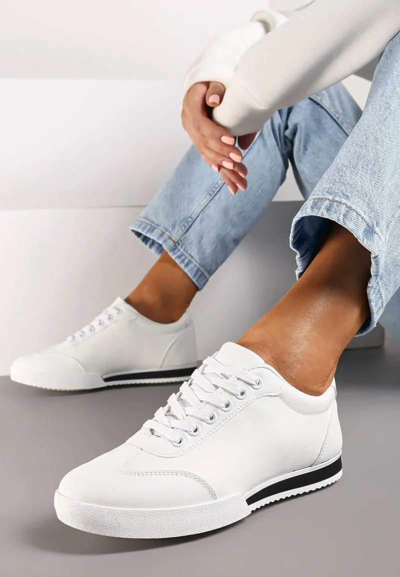 Buty Sportowe Turning Away na płaskiej podeszwie, sznurowane. Część podeszwy z protektorem i wstawką w kontrastowym kolorze. Z przodu i z tyłu dekoracyjne przeszycia. Wykonane z ekoskóry.