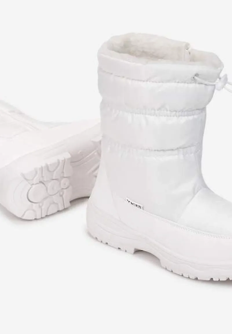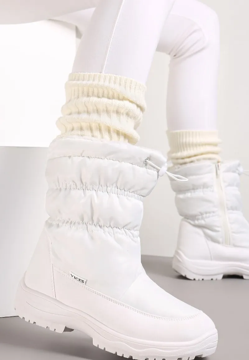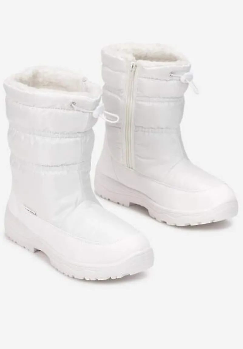 Śniegowce Tangletown na grubej podeszwie ozdobionej delikatnym tłoczeniem po boku, z protektorem. Z cholewką za kostkę z licznymi przeszyciami. Przy krawędzi wszyty sznurek z ozdobnym stoperem. Po wewnętrznej stronie zapinane na zamek błyskawiczny. Ocieplone. Wykonane z materiału. Idealnie sprawdzą się podczas śniegu i niskiej temperatury!