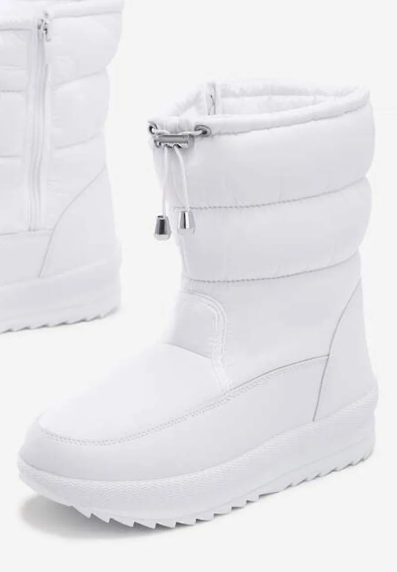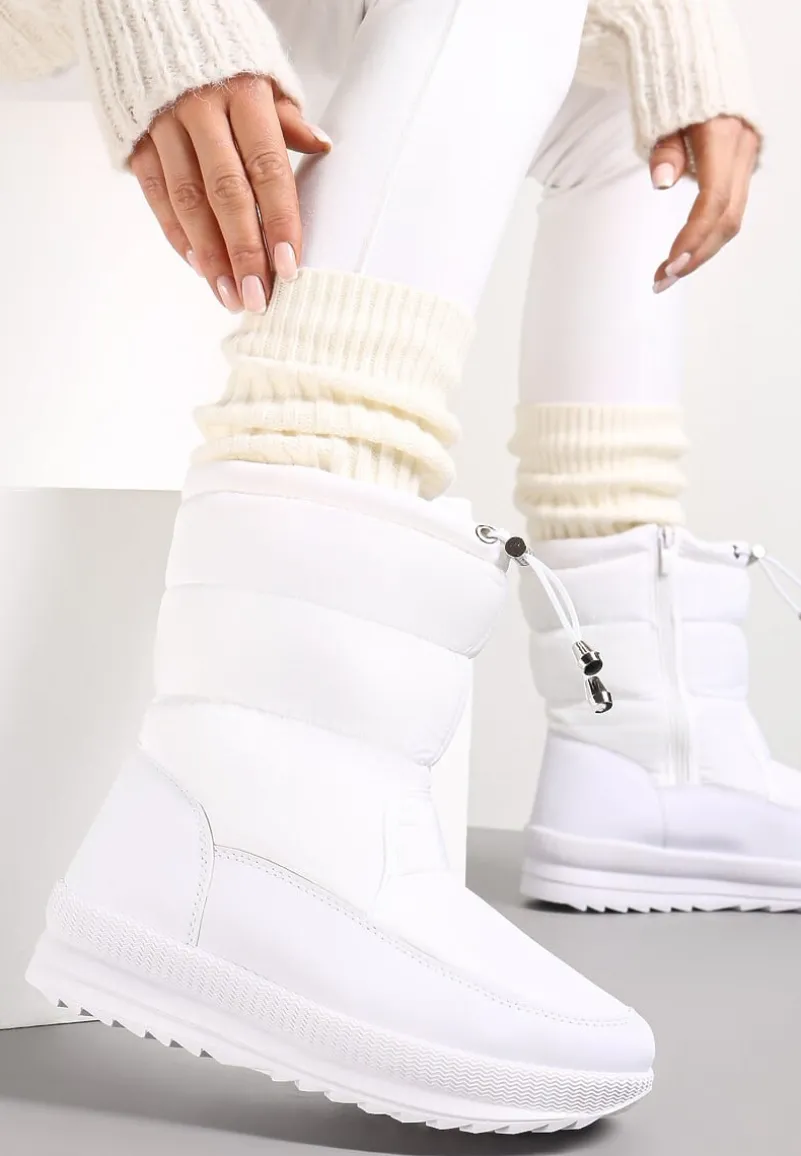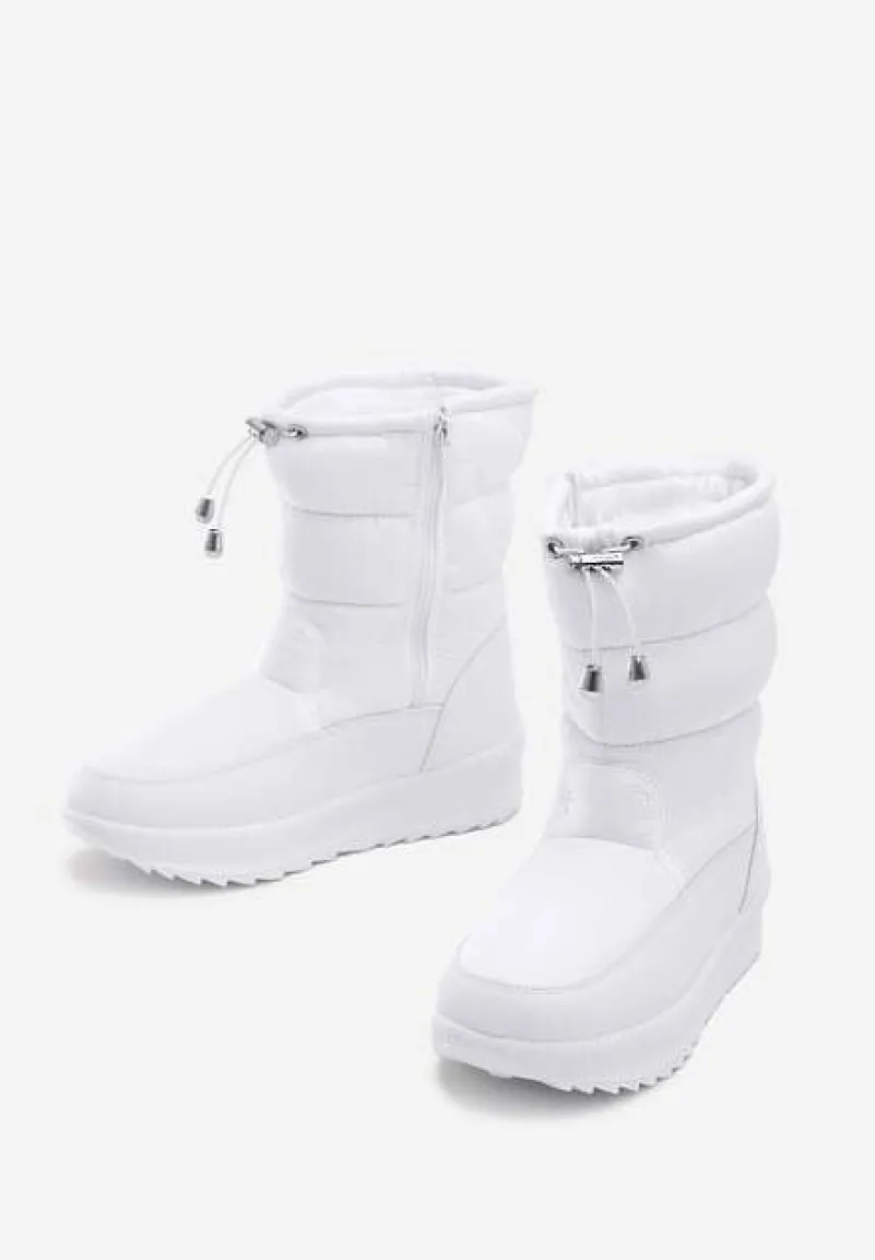 Śniegowce Aramantha z pikowaną cholewką za kostkę. Cholewka wykończona troczkiem ze stoperem, dzięki czemu możesz regulować jej szerokość. Zapinane na zamek błyskawiczny, umiejscowiony po wewnętrznej stronie. Gruba platforma, wykończona solidnym protektorem. Model ocieplony. Zachowane w minimalistycznej, nieco futurystycznej stylistyce, będą ciekawym dodatkiem do codziennych stylizacji.