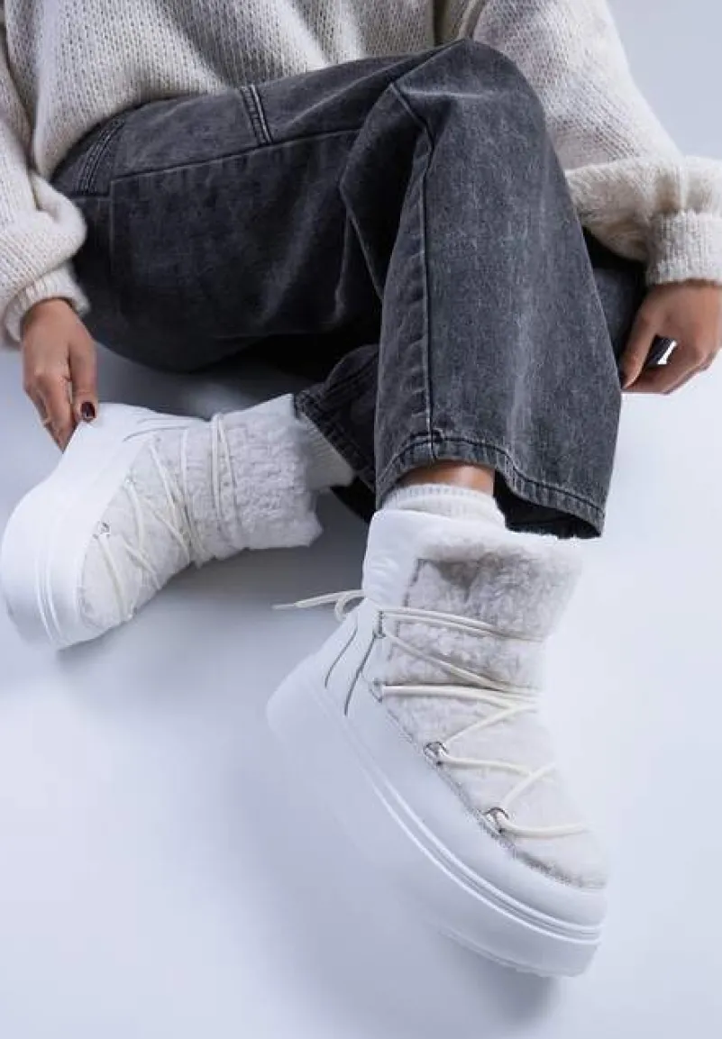 Odkryj Śniegowce Vices na Platformie – Twoich nowych, zimowych sprzymierzeńców. Futerko sprawdzi się idealnie jako ocieplenie, a platforma zabezpieczy przed chłodem. Idealne do casualowych stylizacji z długim płaszczem i dzianinowym swetrem, jak też do bardziej eleganckich zestawów z dopasowaną spódnicą i grubym kardiganem. Zasznurowane i gotowe – powitaj zimę w wielkim stylu!