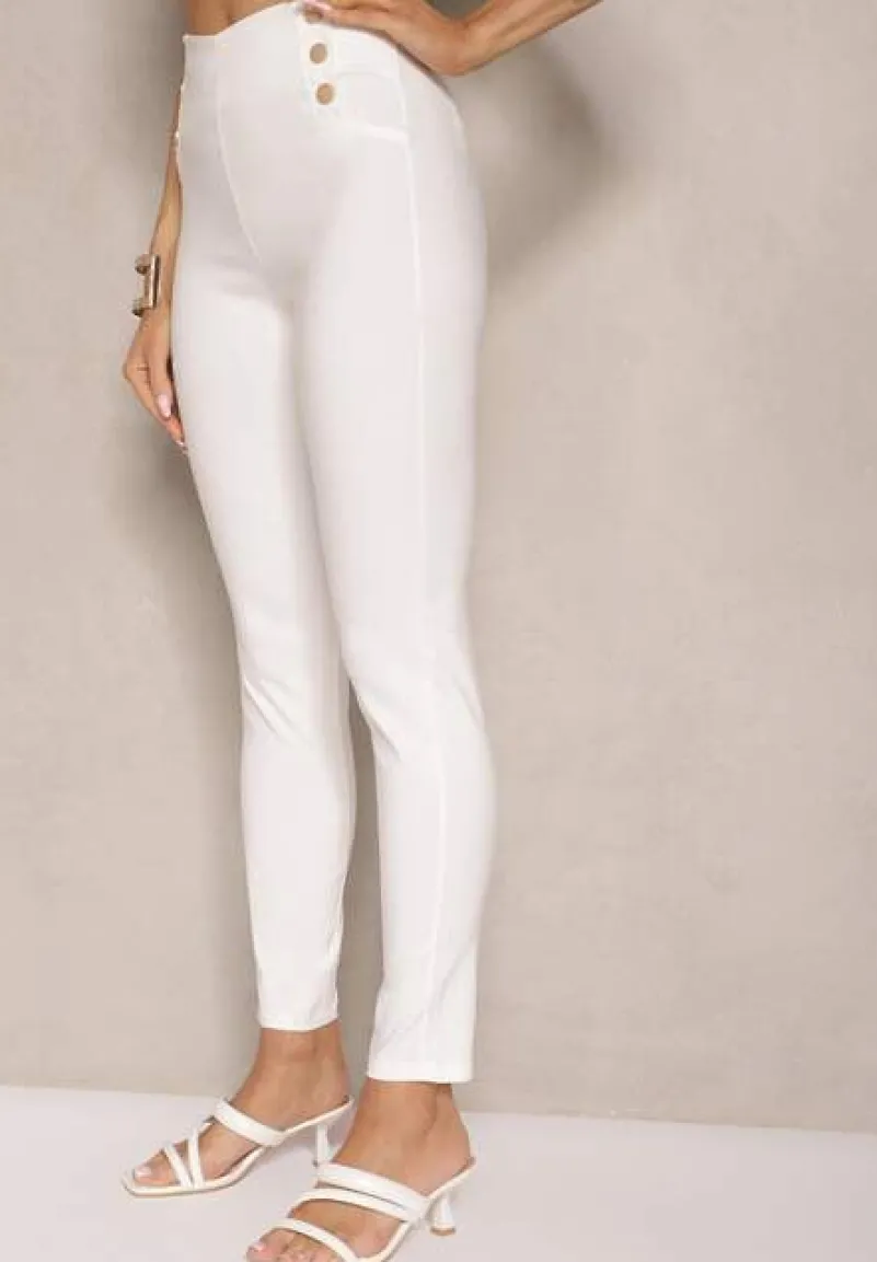 Spodnie Skinny z Bawełną i Ozdobnymi Guzikami Arrimarela z elastyczną gumką to must-have w szafie każdej modnej kobiety! Ich klasyczny fason z wysokim stanem perfekcyjnie podkreśla sylwetkę. Ozdobne guziki dodają im niepowtarzalnego charakteru, czyniąc je idealnymi na każdą okazję – od casualowych spotkań z przyjaciółmi po formalne wyjścia. Stylizuj je z luźną bluzką i skórzaną kurtką na co dzień, lub z elegancką koszulą i szpilkami na wieczorną kolację – możliwości są nieskończone!