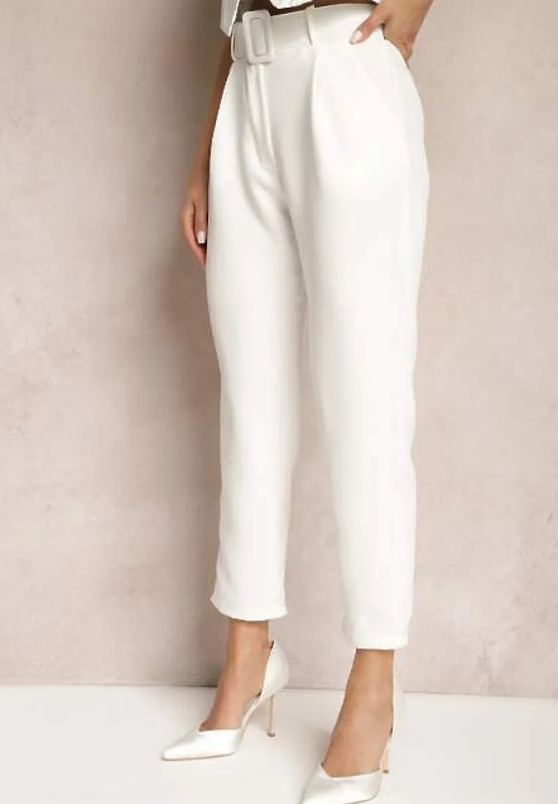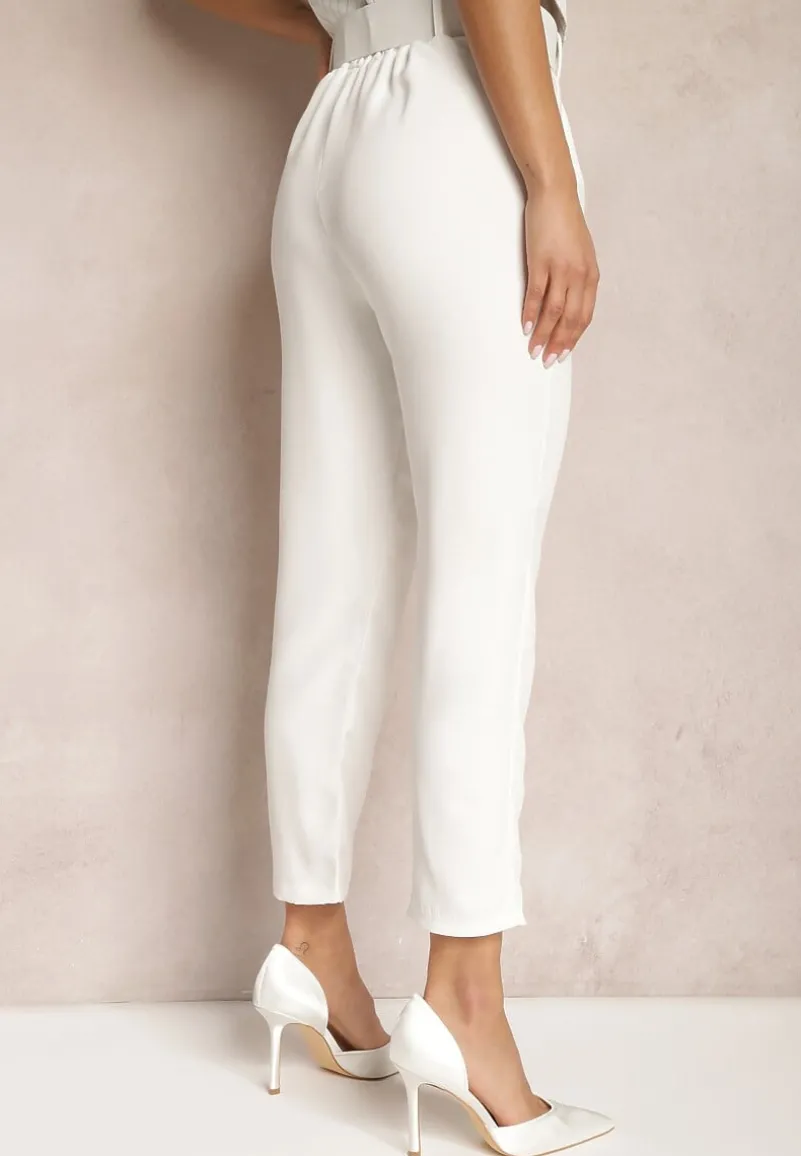 Spodnie Eudea o garniturowym fasonie. Długa, prosta nogawka. Do spodni dołączony pasek z tego samego materiału z prostokątną, powlekaną klamrą. Po bokach skośne, wsuwane kieszenie. Zapinane na guzik i zamek błyskawiczny. W jednolitej kolorystyce, co dodaje im ponadczasowego stylu. Eleganckie spodnie z paskiem do kompletu to obowiązkowy element kapsułowej garderoby w casualowym stylu.