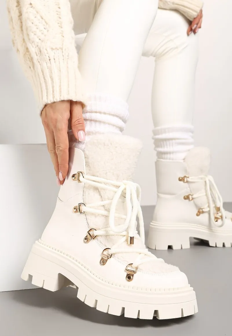 Śniegowce Innathiel to kwintesencja stylu połączona z najnowszymi trendami. Masywna, stabilna platforma nie tylko doda Ci kilku centymetrów wzrostu, ale i pewności siebie. Zapięcie sznurówkowe pozwala na dopasowanie buta. Wybierz te śniegowce na casualowe wyjście z przyjaciółmi, zestawiając je z oversizedowym swetrem i obcisłymi jeansami, albo na rodzinny spacer w zimowy krajobraz – dodaj kolorową parkę i chwytające wzrok akcesoria.