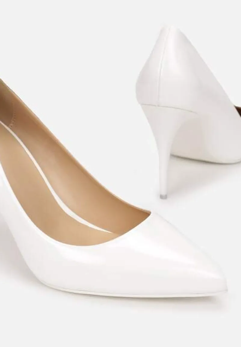 Szpilki Helireanes wsuwane, na wysokim, cienkim obcasie. Wykonane z pięknie lakierowanej ekoskóry. Szpiczasty nosek lekko wysmukla sylwetkę. Dodadzą Twojej stylizacji zmysłowości i kobiecości, czarująco wyglądają np. w duecie z taliowanym kombinezonem albo sukienką z pianki.