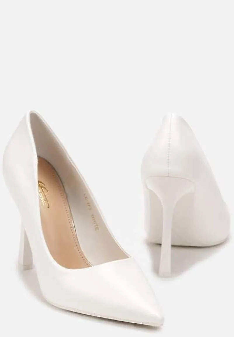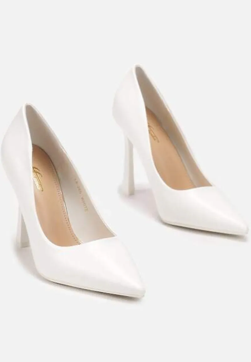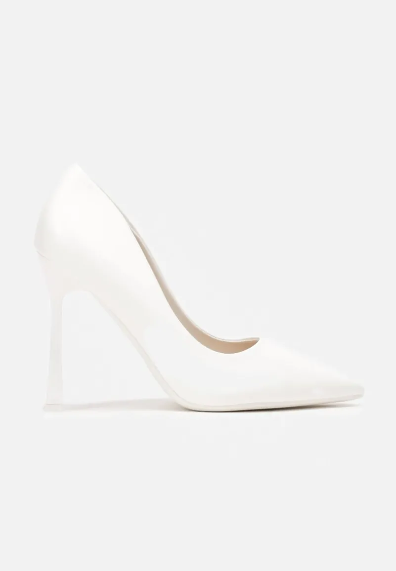 Białe Szpilki na Geometrycznym Obcasie i Nosek w Szpic Versara