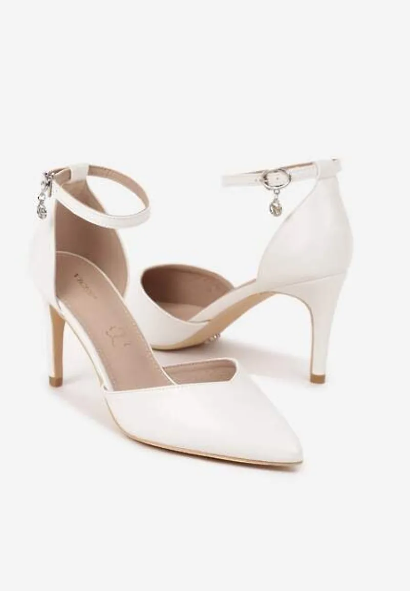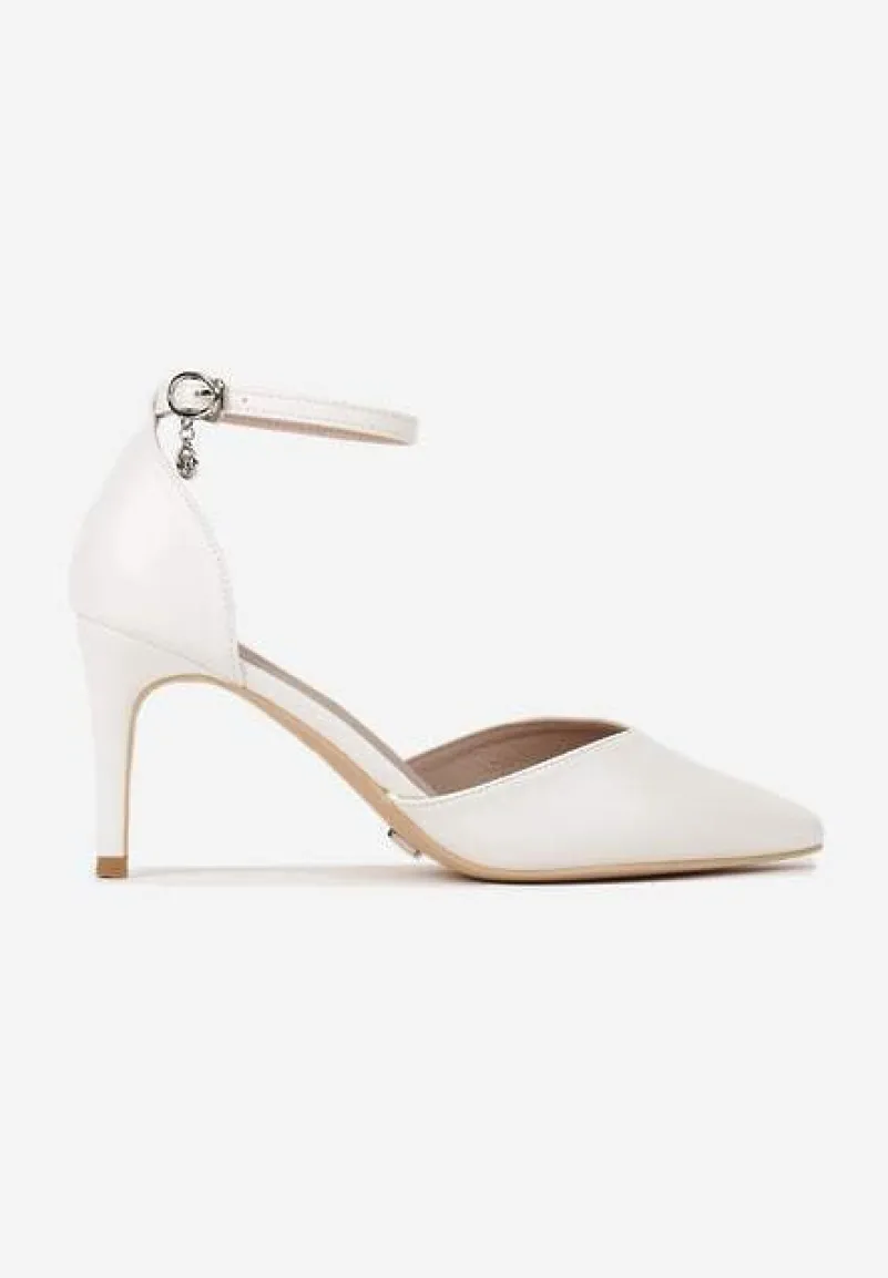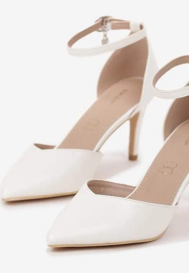 Białe Szpilki Vices z Wkładką ze Skóry Naturalnej i Ozdobnym Paskiem Korori
