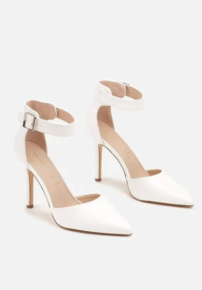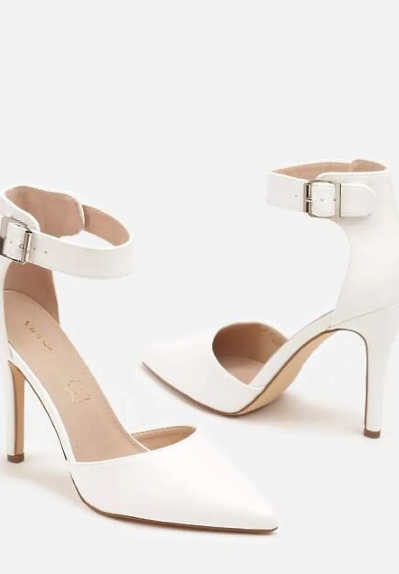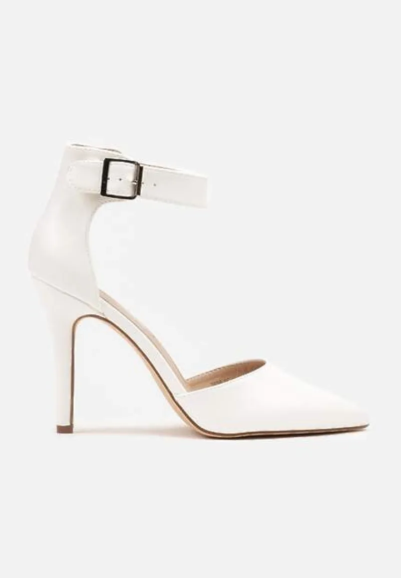 Białe Szpilki Vices z Wkładką ze Skóry Naturalnej Ozdobione Sprzączką Greliri