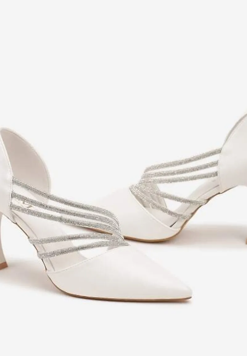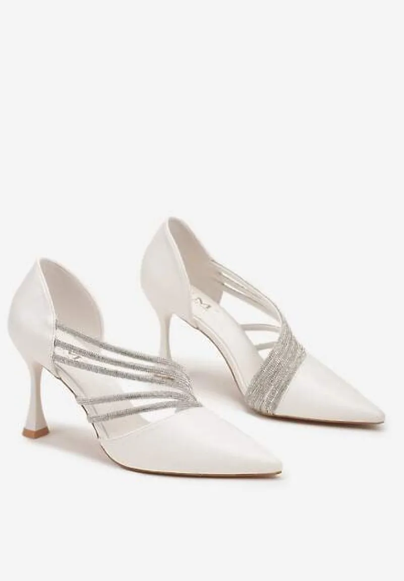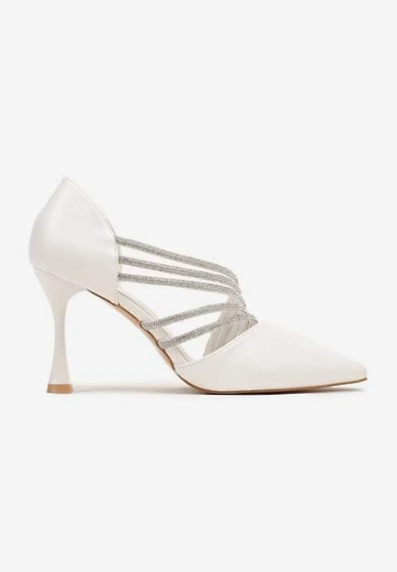 Białe Szpilki w Eleganckim Stylu Ozdobione Paskami z Cyrkonii Ettaisa