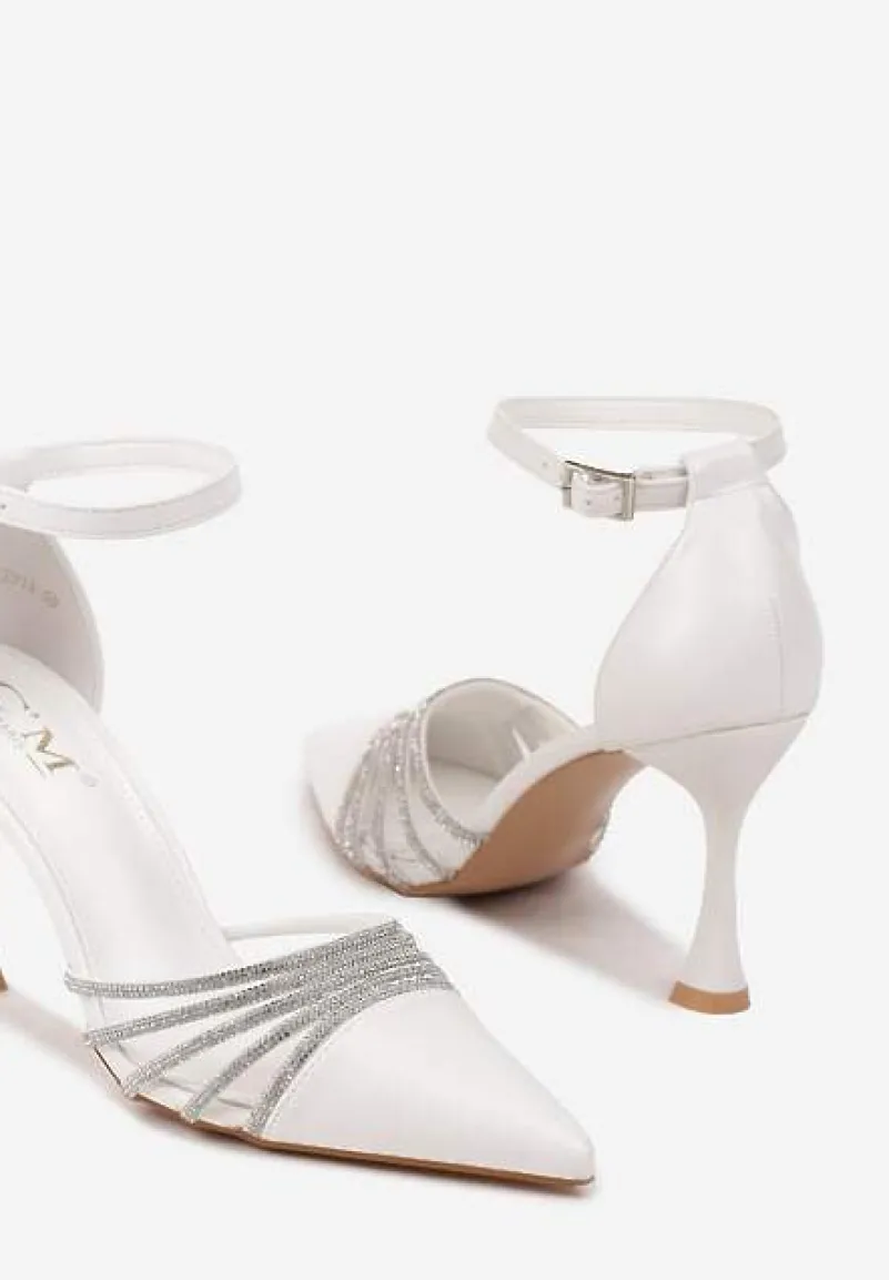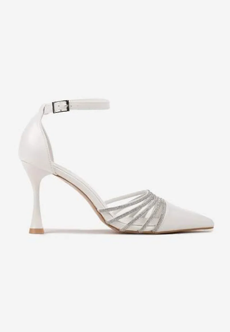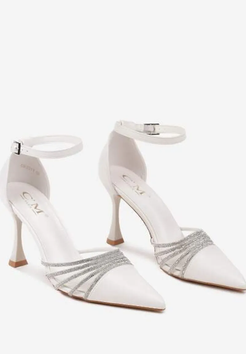 Białe Szpilki w Eleganckim Stylu z Cyrkoniowymi Paskami Erisorae
