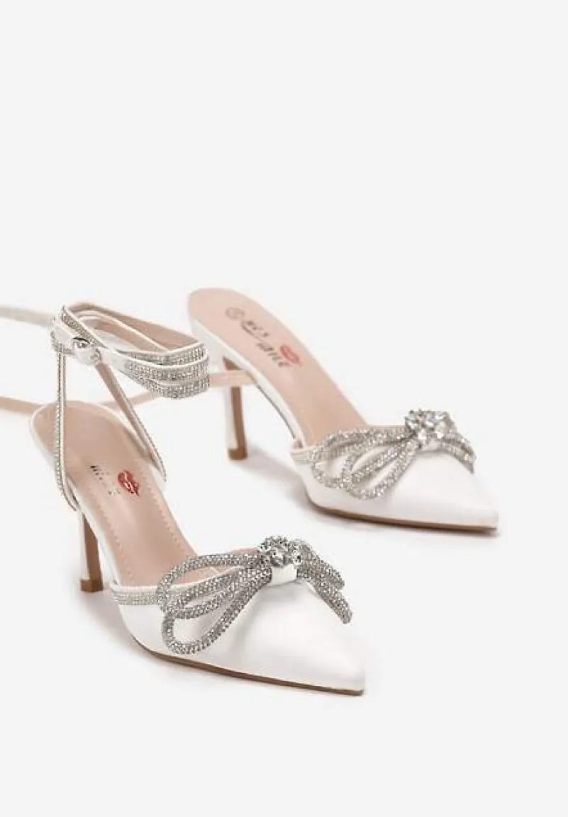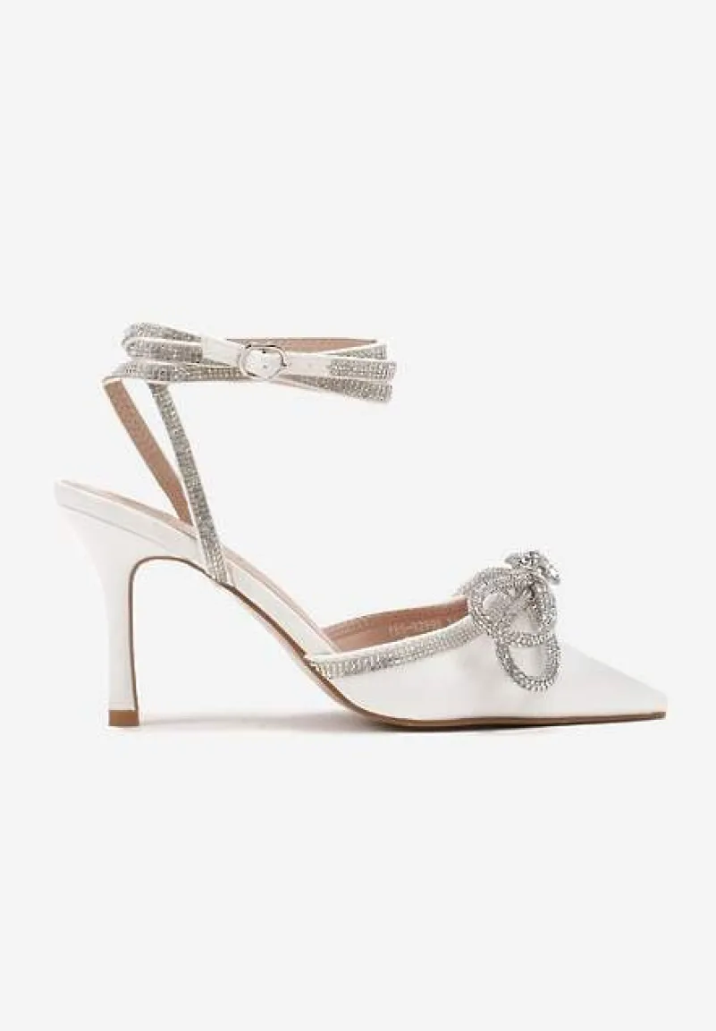 Białe Szpilki z Paskami i Kokardką w Cyrkonie Carolia