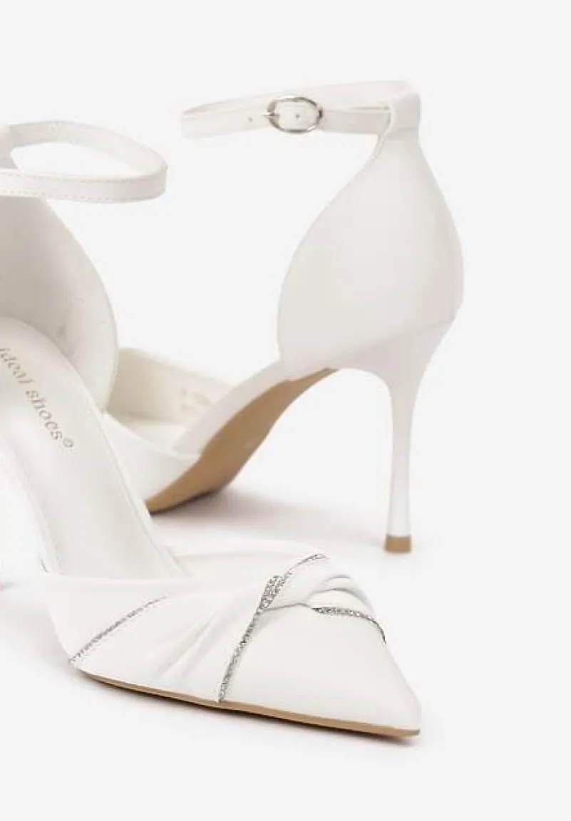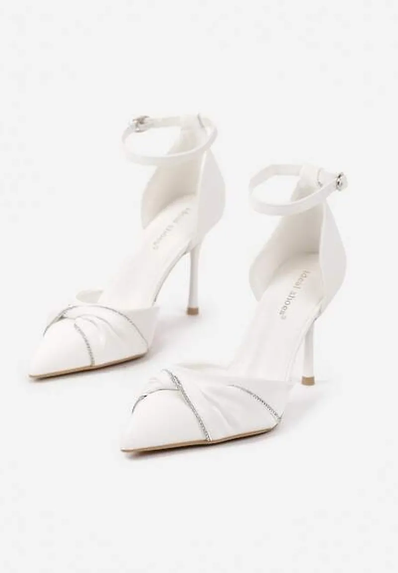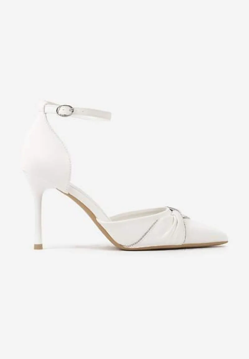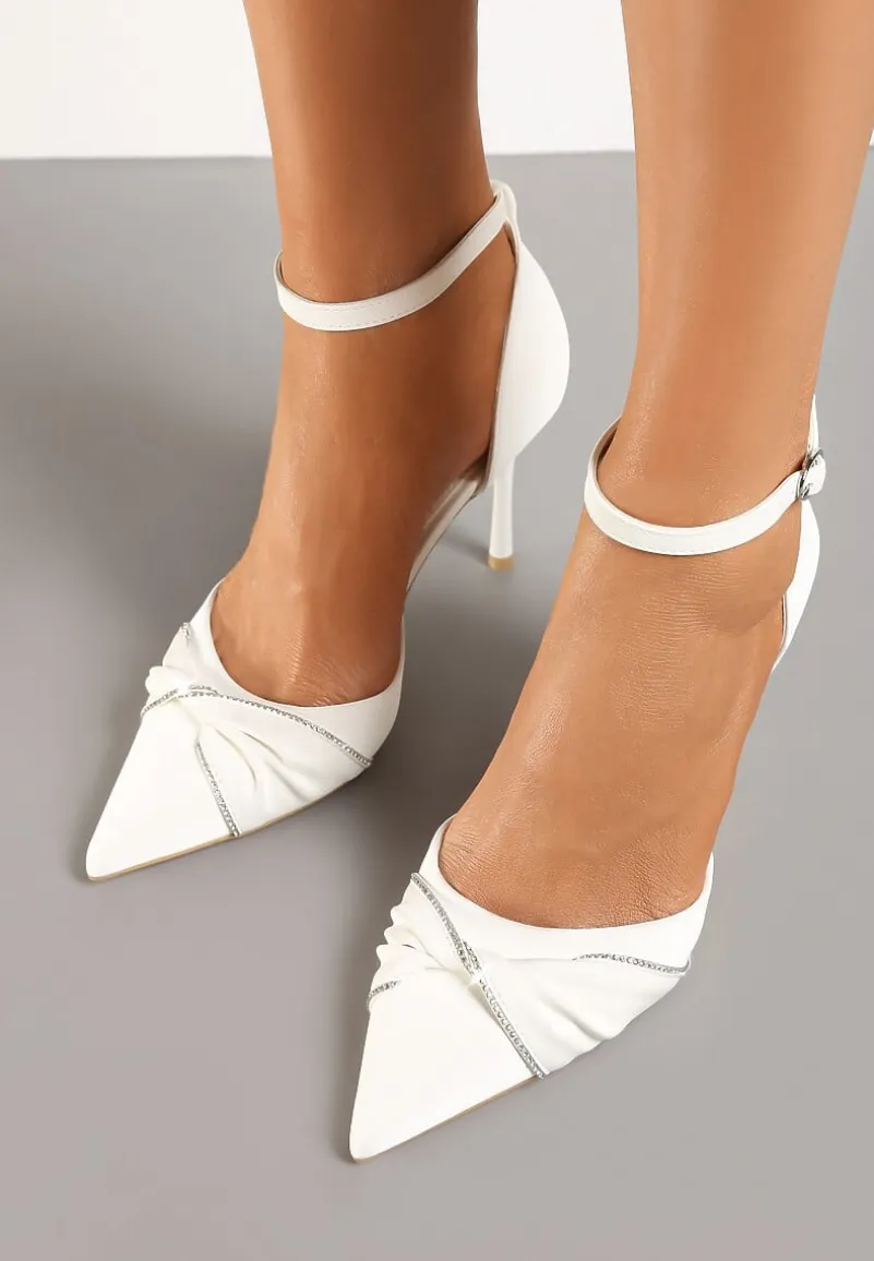 Białe Szpilki ze Szpiczastym Noskiem Zdobionym Marszczeniem Zapinane na Klamerkę Zivinita