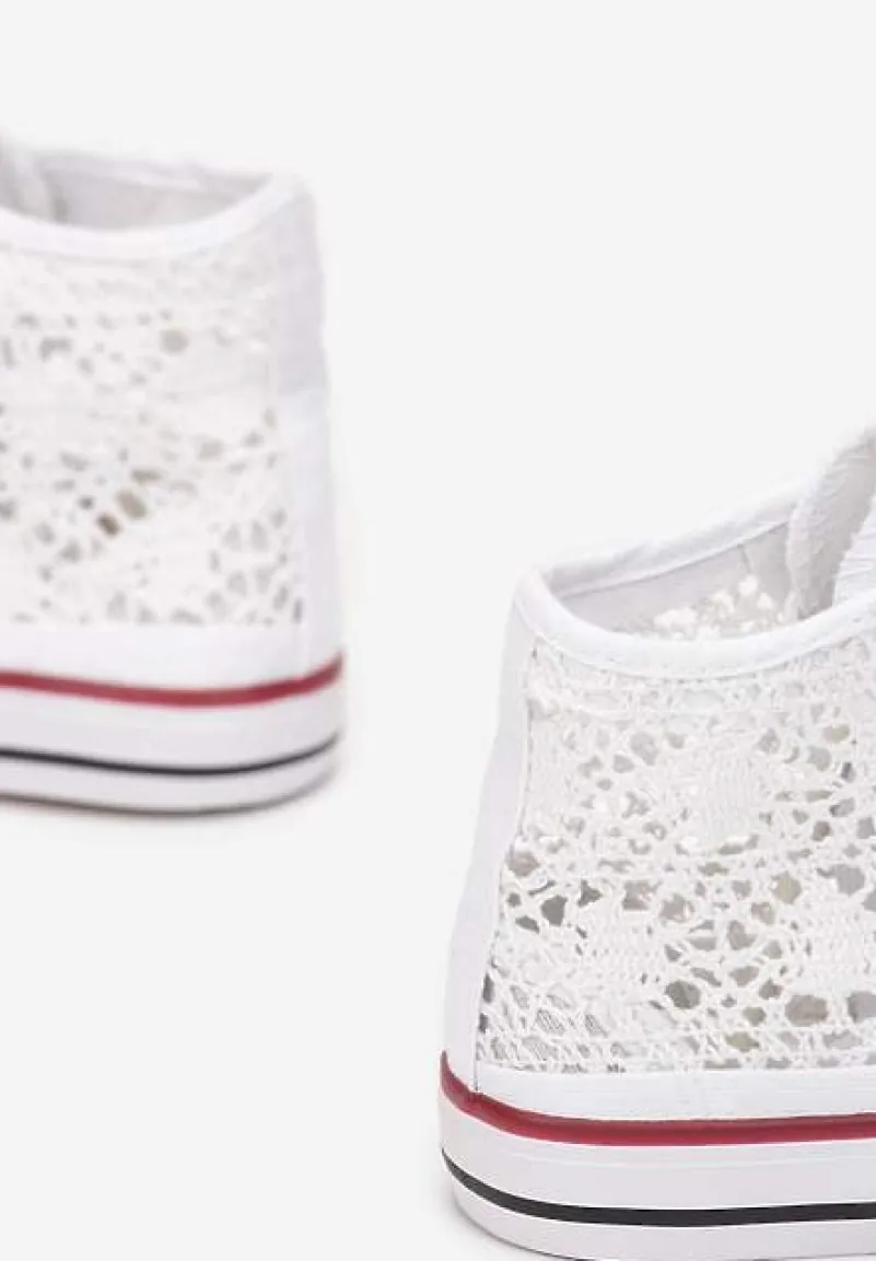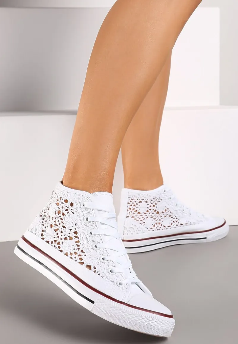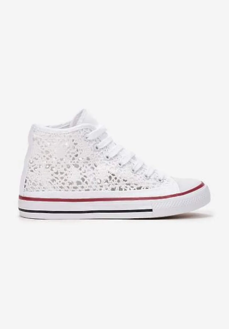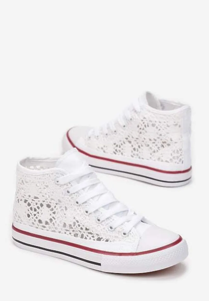 Trampki Appiolea na grubej, elastycznej podeszwie z lamówkami w kontrastowych kolorach. Okrągły, gumowy nosek. Wykonane z koronkowego materiału tekstylnego. Wiązane na płaskie, białe sznurówki. Sięgające za kostkę. Sugerujemy wybór większego rozmiaru. Najlepiej leżą na wąskiej stopie. Będą pasować do jeansów, sukienek albo materiałowych szortów.