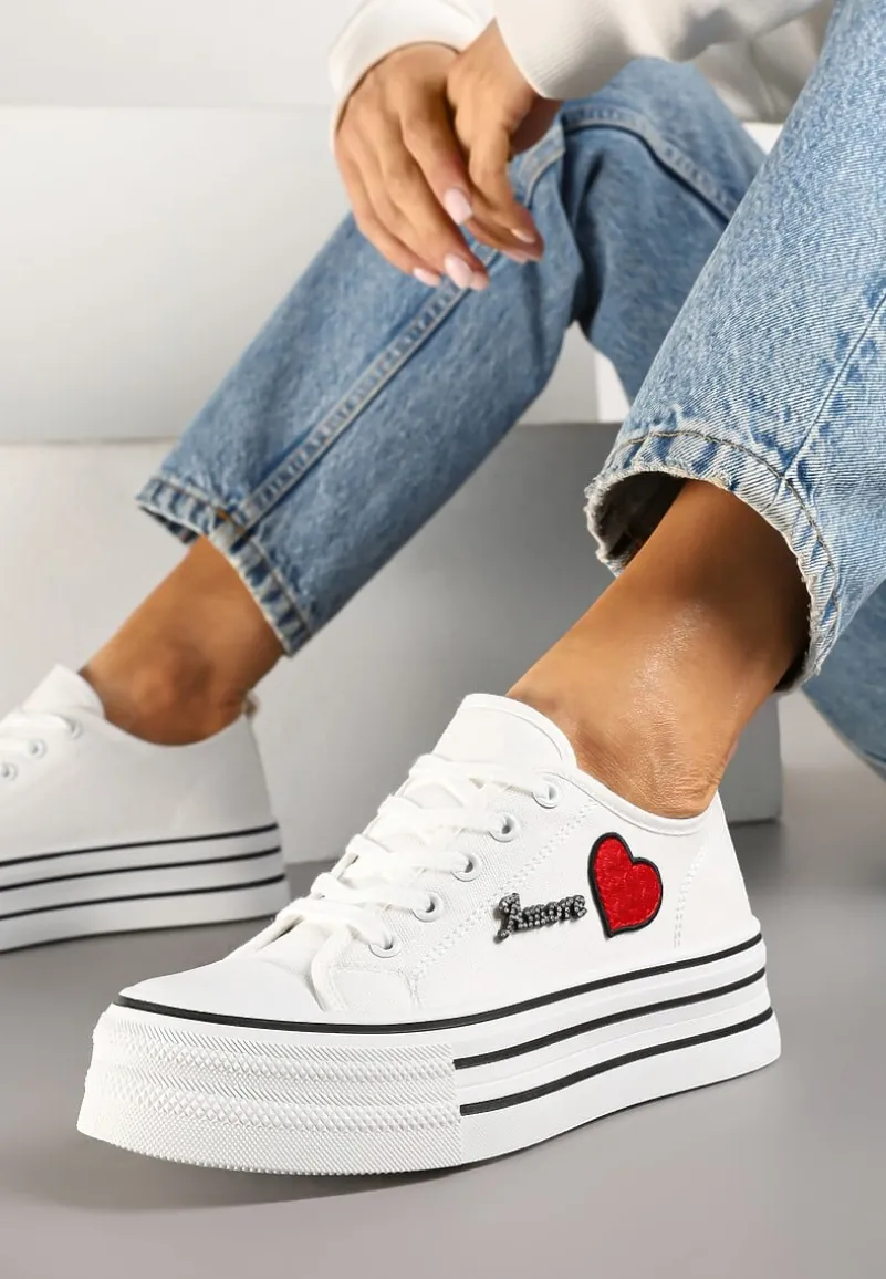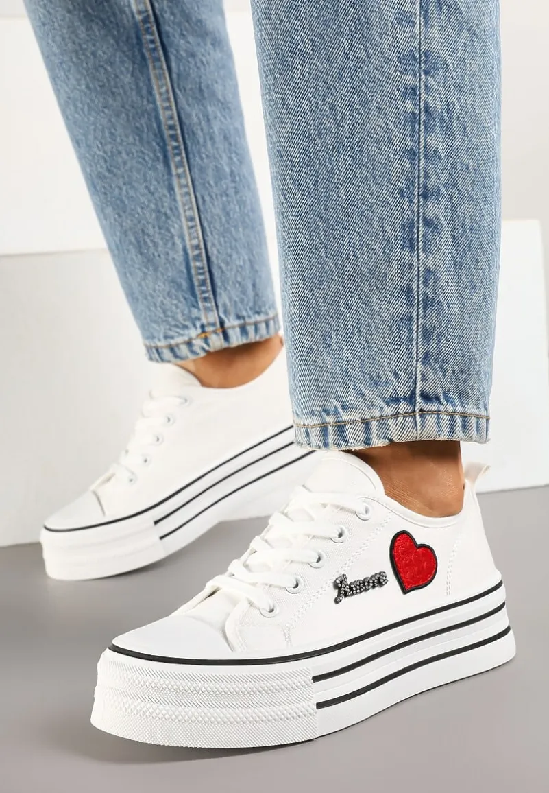 Trampki Eheria na grubej podeszwie z aplikacją są idealnym wyborem dla odważnych kobiet, które cenią sobie modne akcenty i wygodę. Dzięki wyraźnym aplikacjom i napisowi, te trampki mogą stać się gwiazdą casualowej stylizacji z jeansami i luźnym t-shirtem. Wybierz je również na wieczorne wyjście, zestawiając z małą czarną sukienką i jeansową kurtką, by przełamać elegancję odrobiną luzu. Wsuwane i sznurowane z zapięciem na klasyczne sznurowadła, pasują do każdego sezonu i stylu, nadając całości niepowtarzalny charakter.